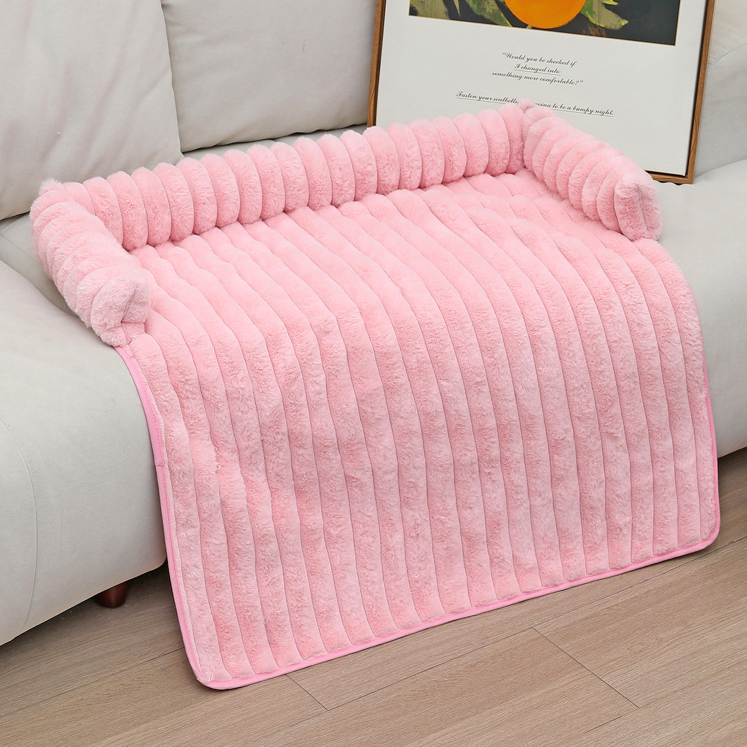 高品兔毛-沙发宠物垫-粉