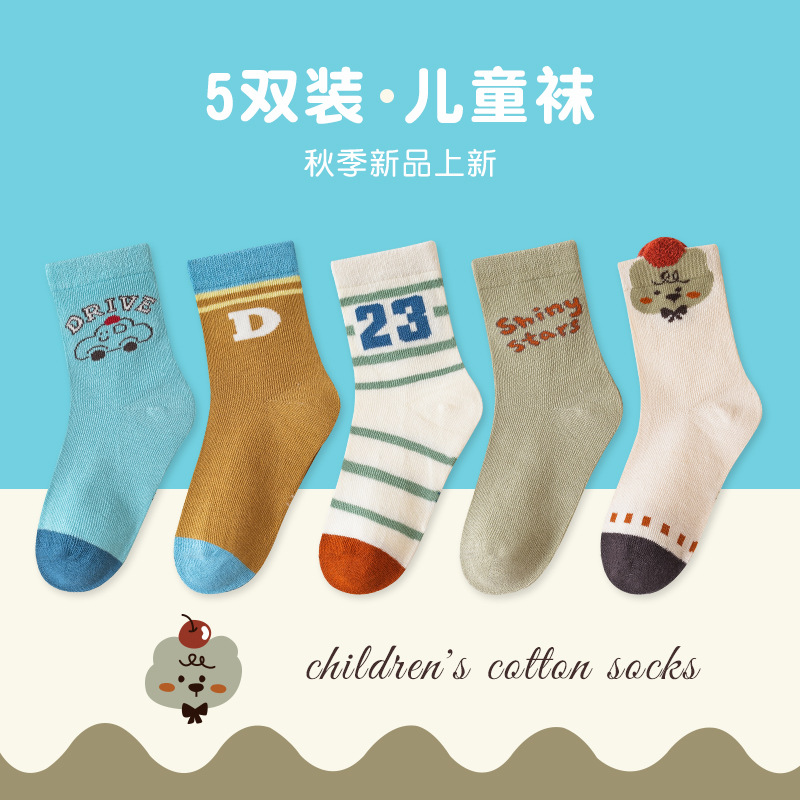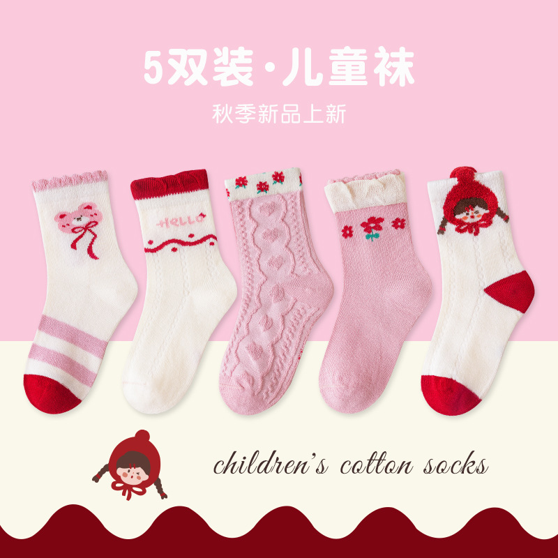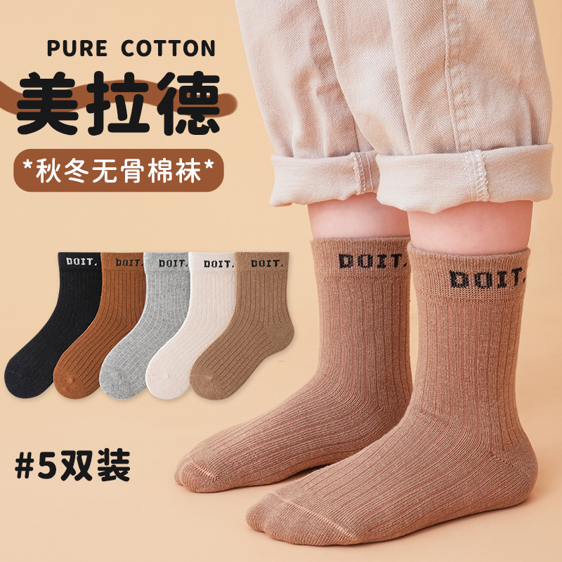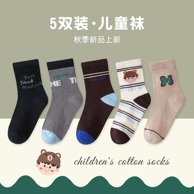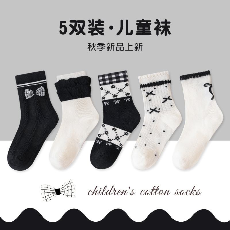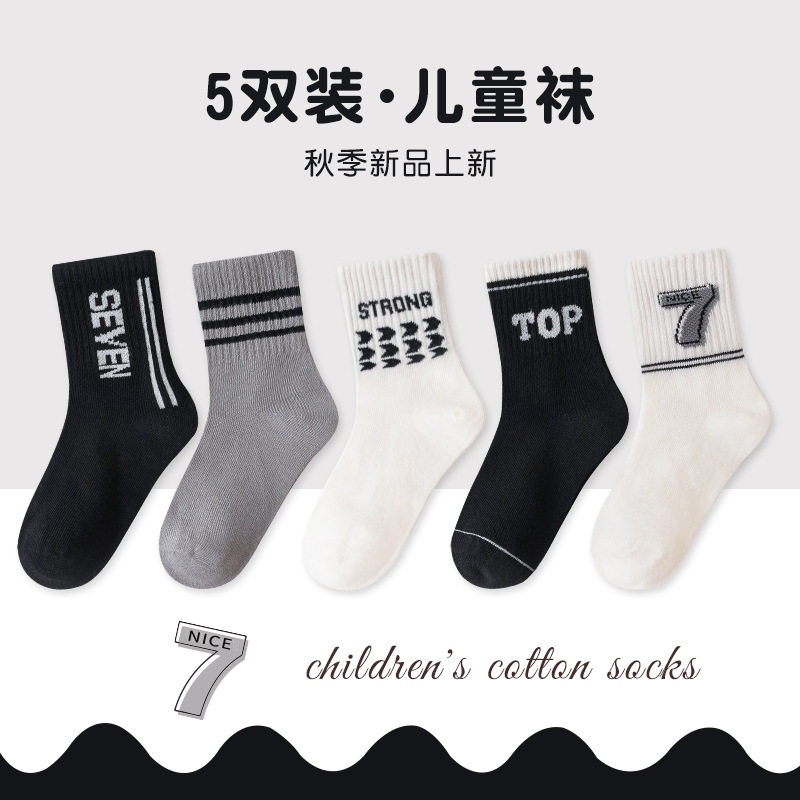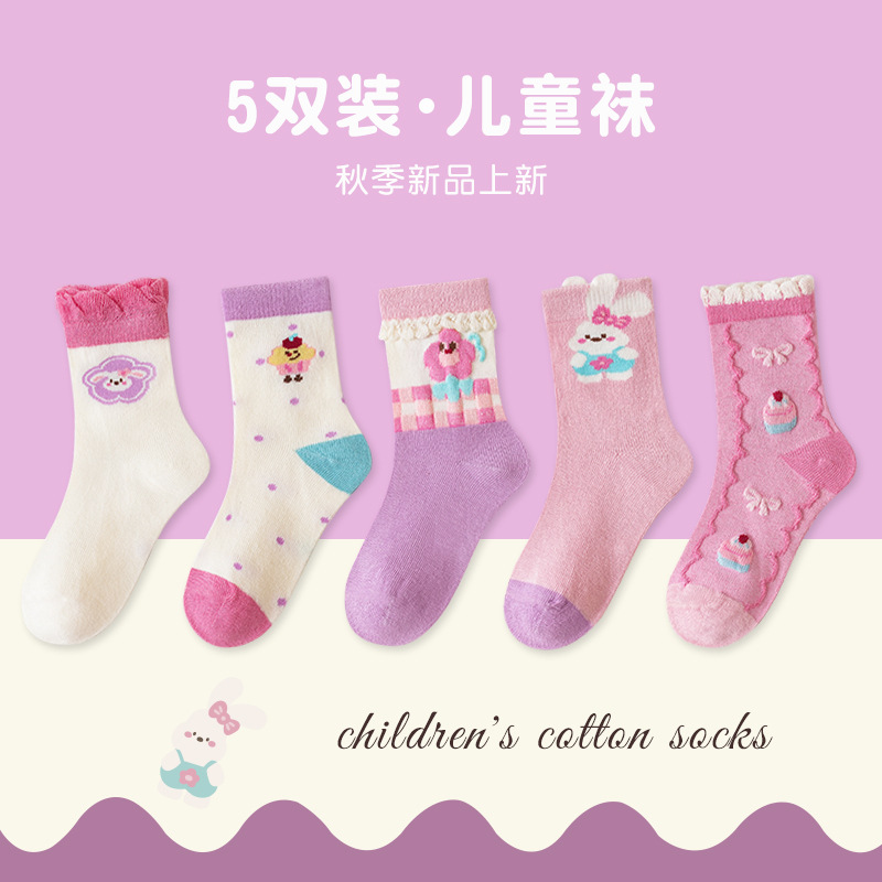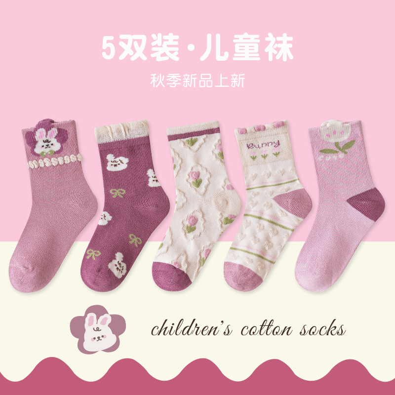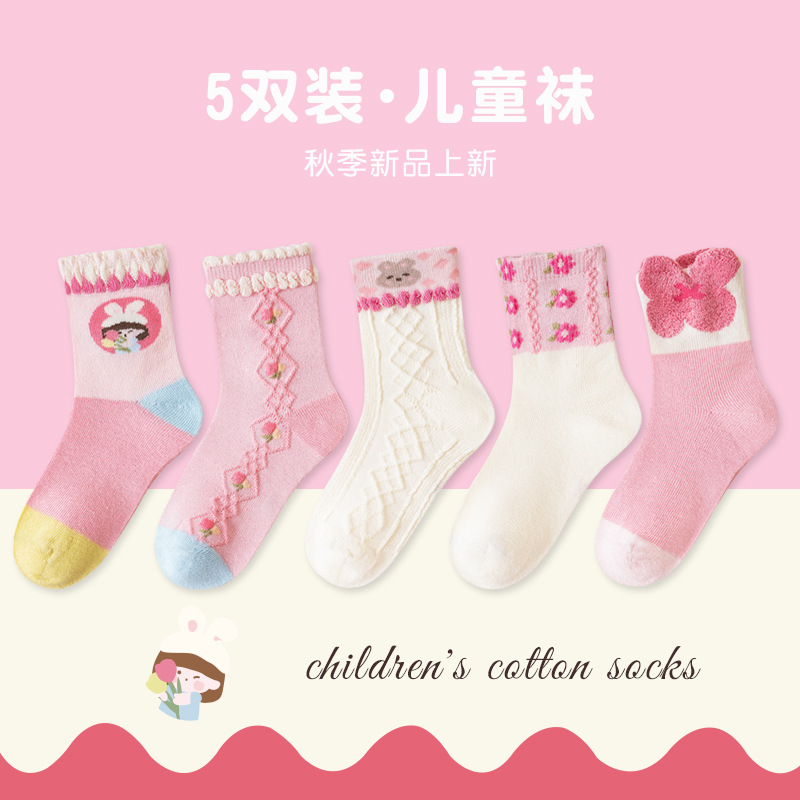 儿童袜子女童秋季卡通中筒袜精梳棉无骨儿童袜学生篮球运动袜潮袜