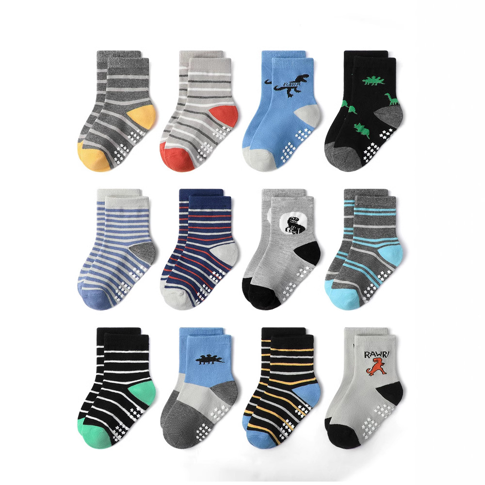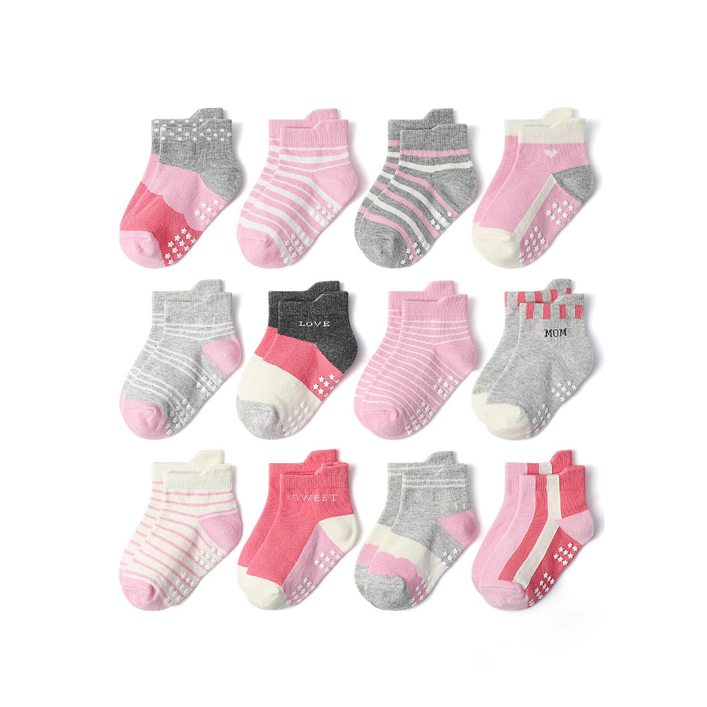 2025亚马逊新款卡通条纹儿童袜子防滑宝宝学步透气防摔倒女童袜子