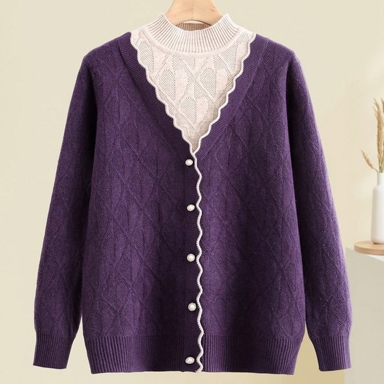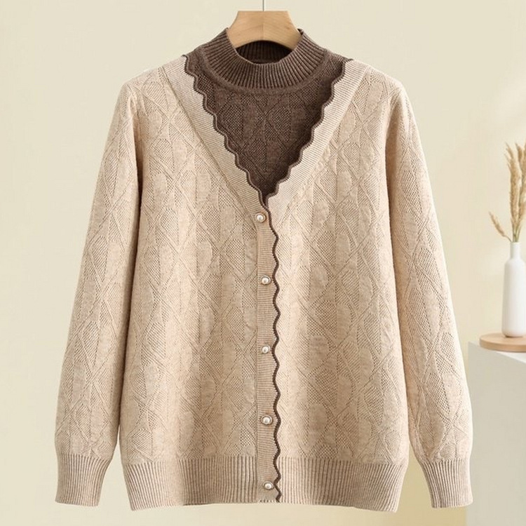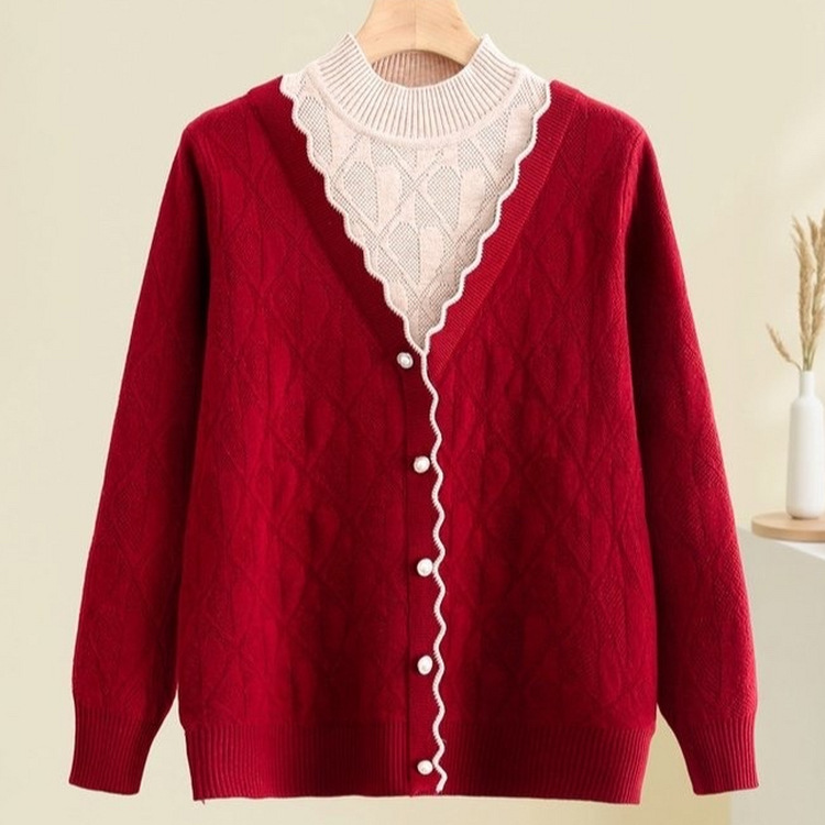 中年女装新款假两件毛衣上衣短款针织衫妈妈秋装洋气中老年打底衫