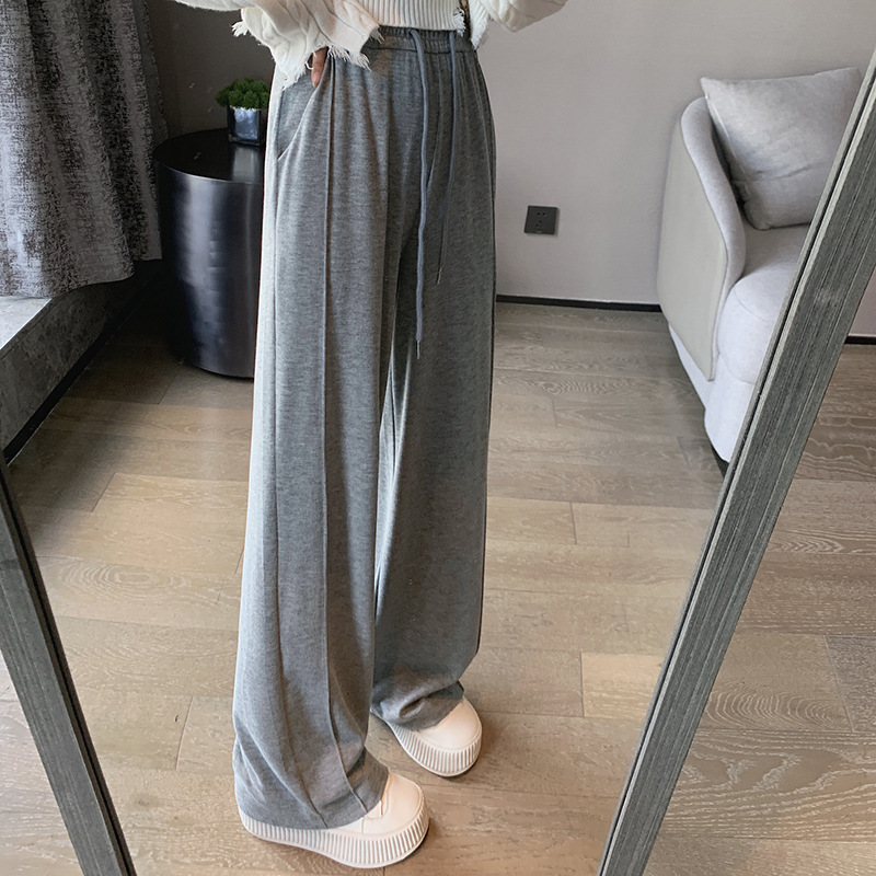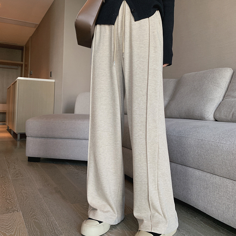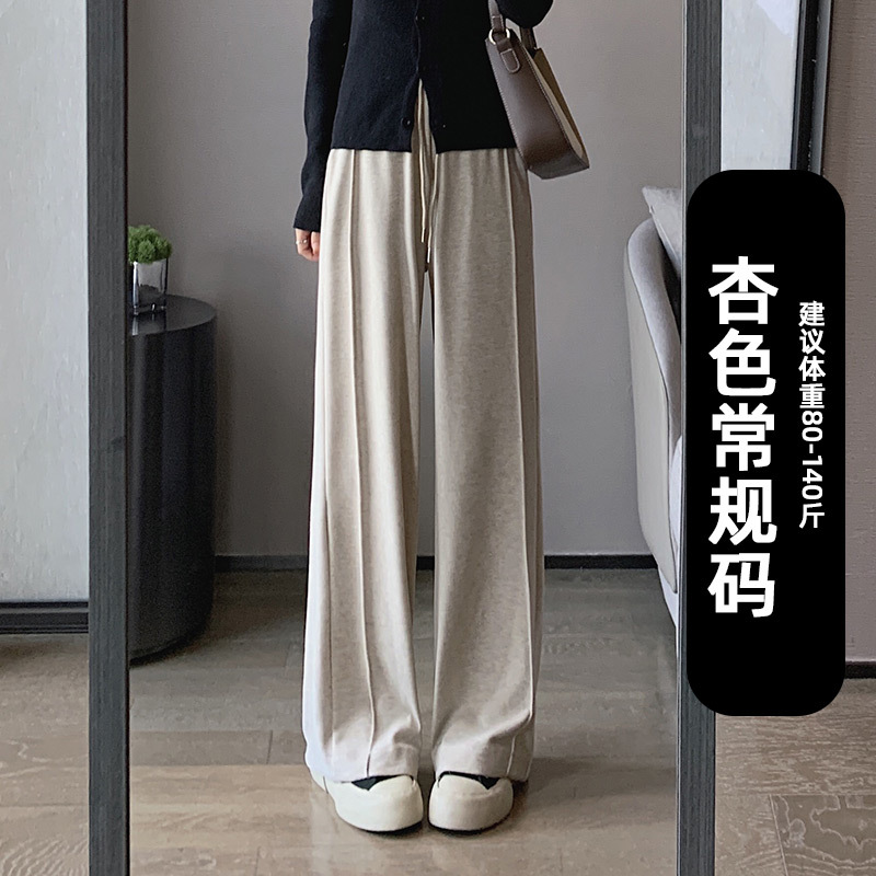 2026春秋新款窄版阔腿裤女垂坠感长裤宽松慵懒直筒糯米裤高腰显瘦