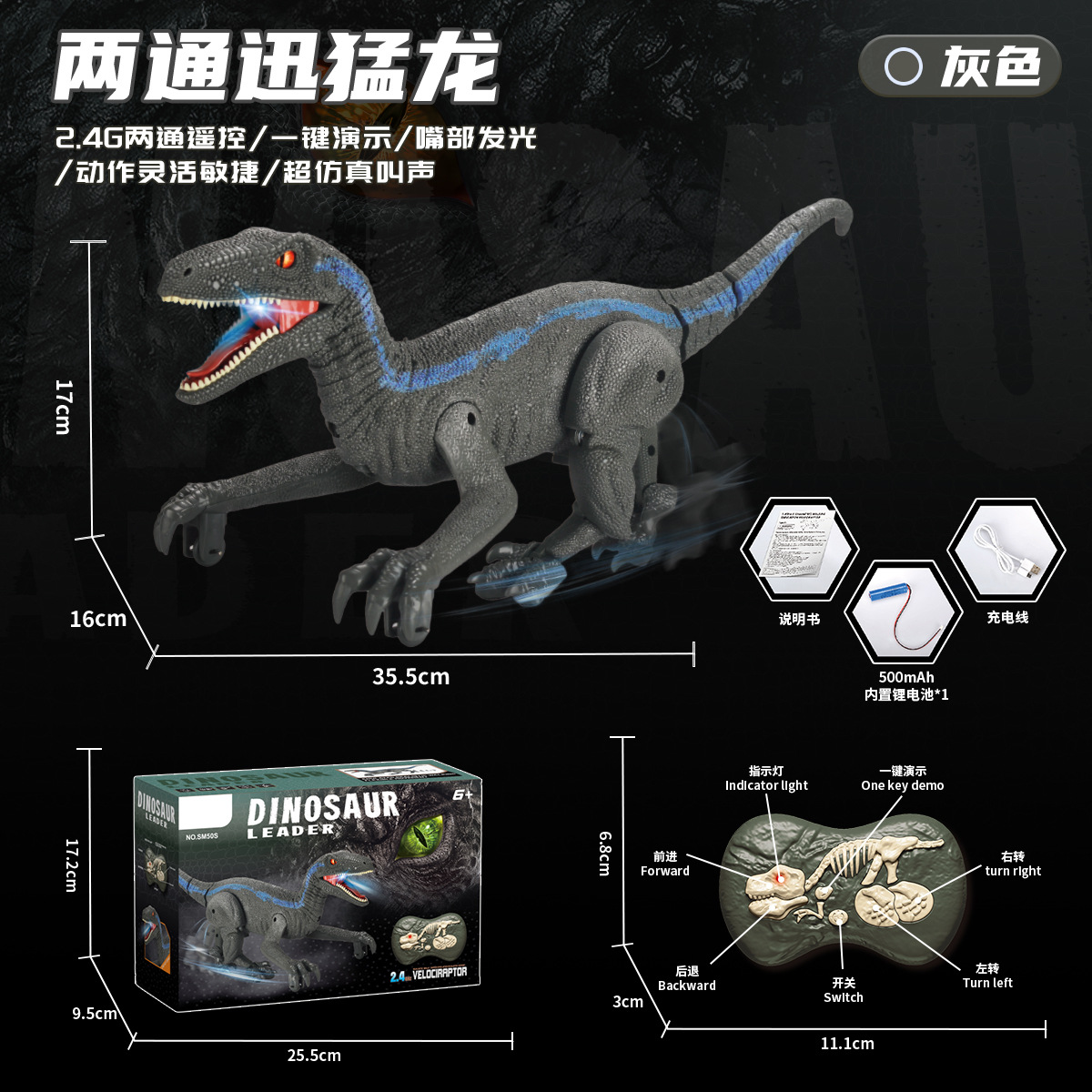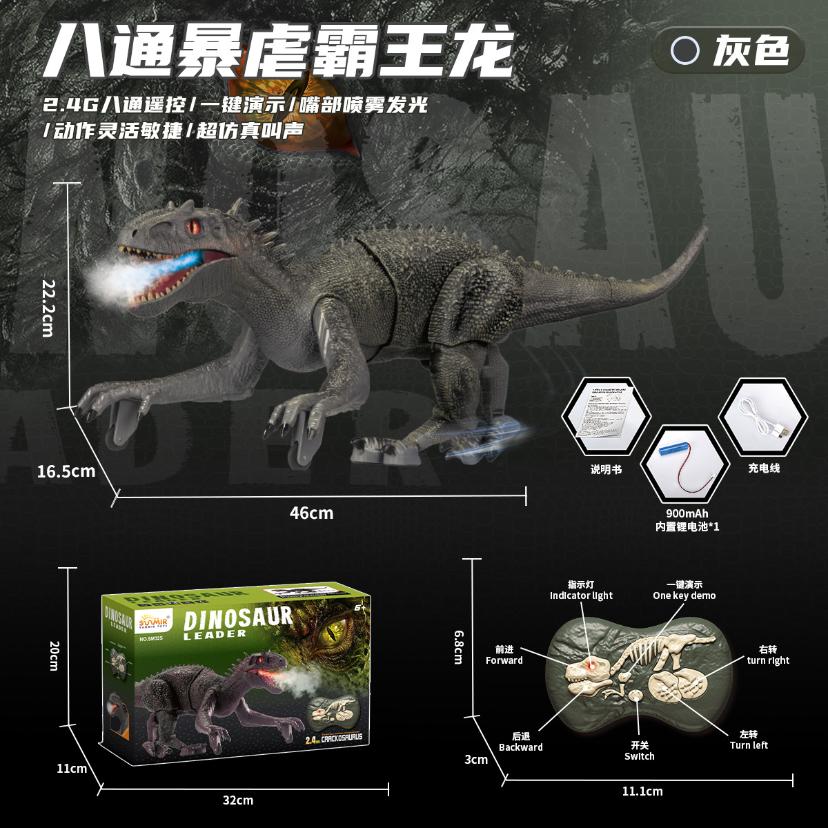 2.4G八通遥控暴虐龙-灰色【英文彩盒】