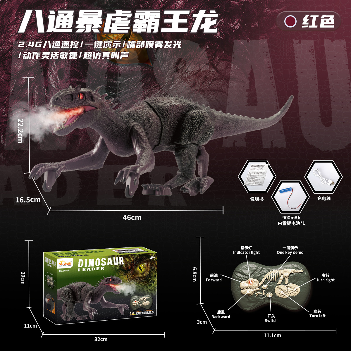 2.4G八通遥控暴虐龙-红色【英文彩盒】