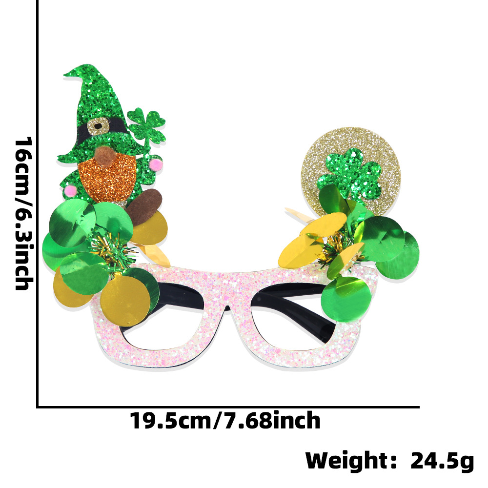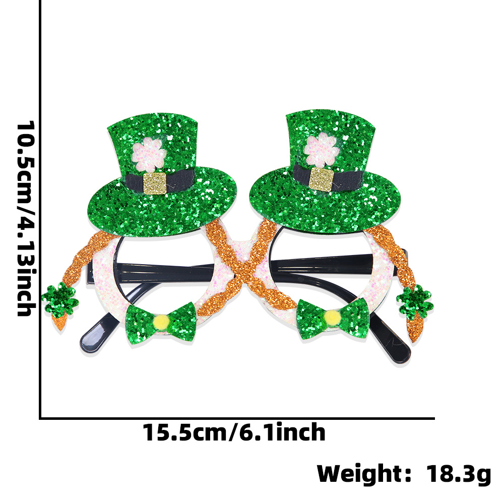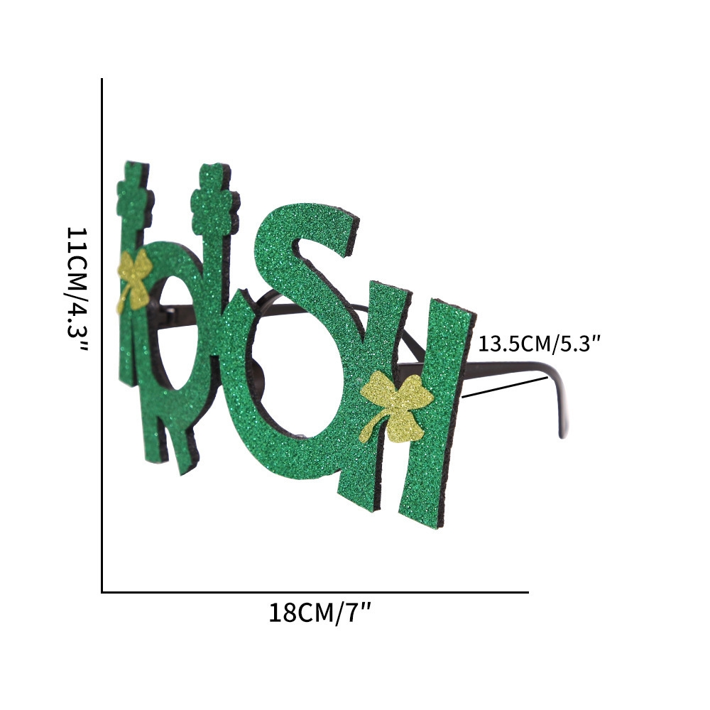 新款圣帕特里克派对眼镜无纺布绿色金葱眼镜框爱尔兰节三叶草眼镜