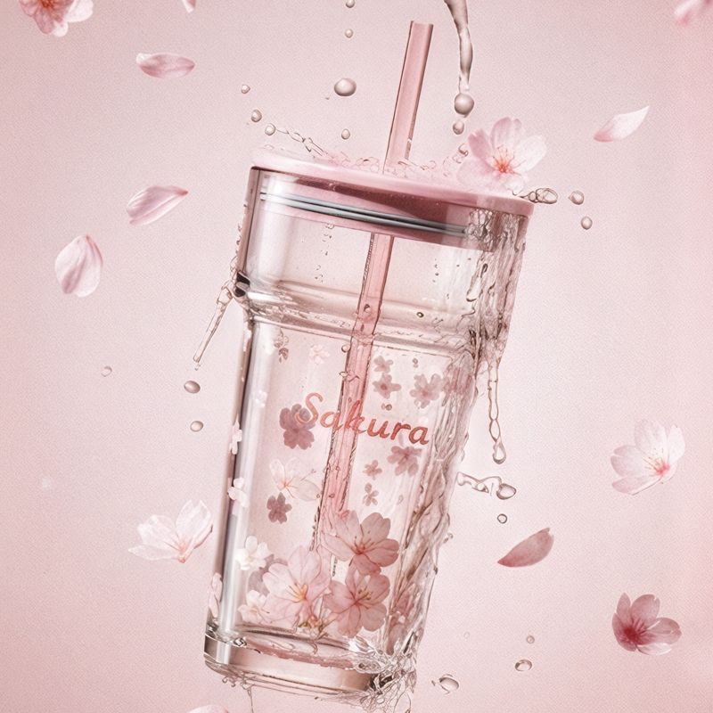 粉色樱花570ml【耐热玻璃/吸管口】