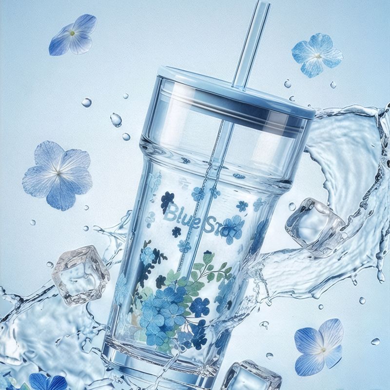 蓝色星星570ml【耐热玻璃/吸管口】