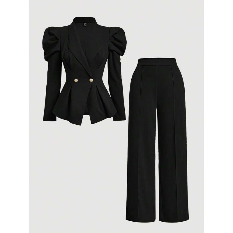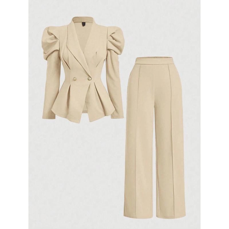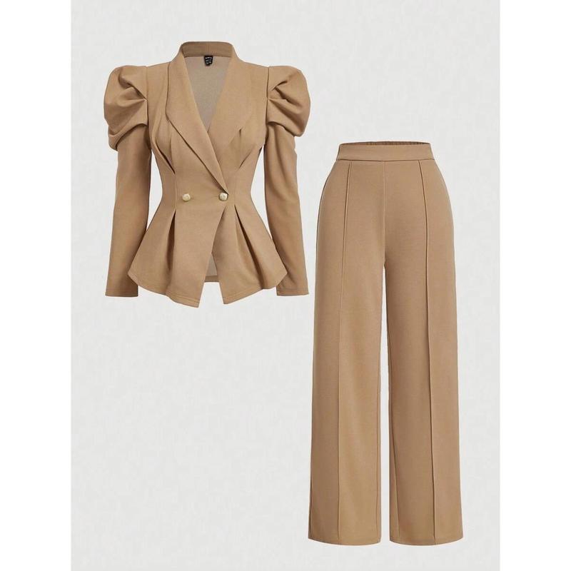 款Women 2 Pieces Set Brown Vintage Flared Sleeve Fitted