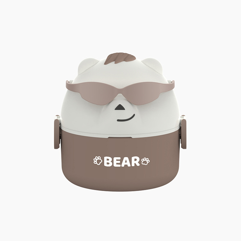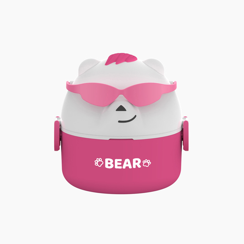 跨境热卖眼镜熊双层手提饭盒分隔分层上班族便当盒学生餐盒大容量