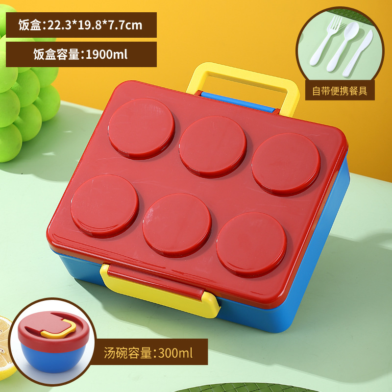 跨境DIY积木饭盒午餐盒儿童沙拉盒便当盒野餐盒水果盒微波炉加热
