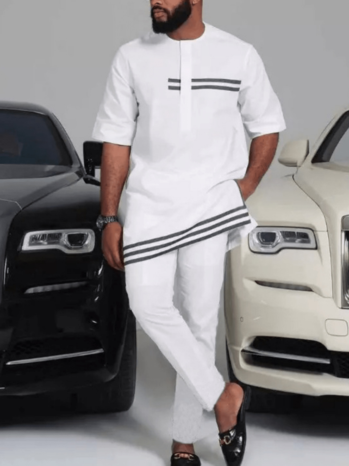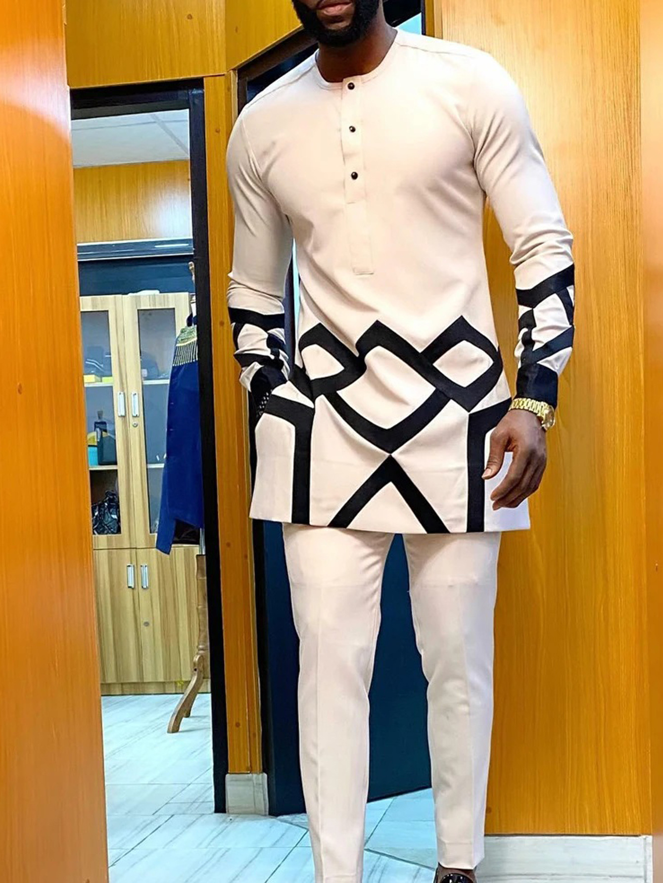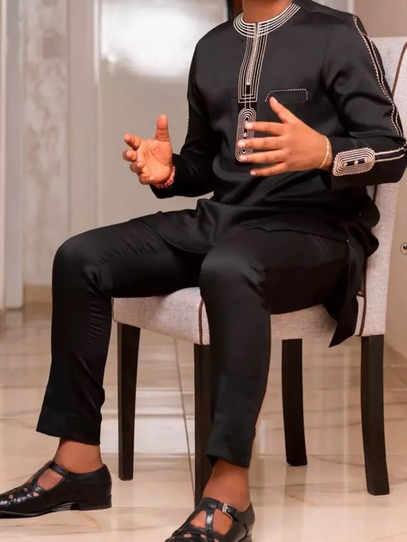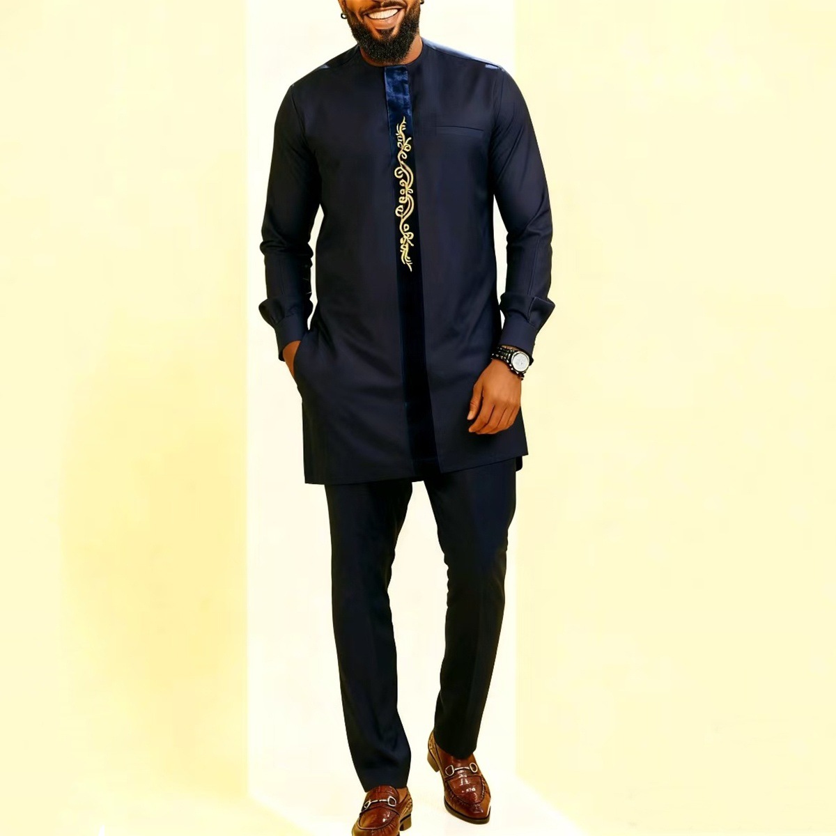 热销穆斯林非洲休闲百搭风格男士结婚西装2件套圆领长袖上衣裤子