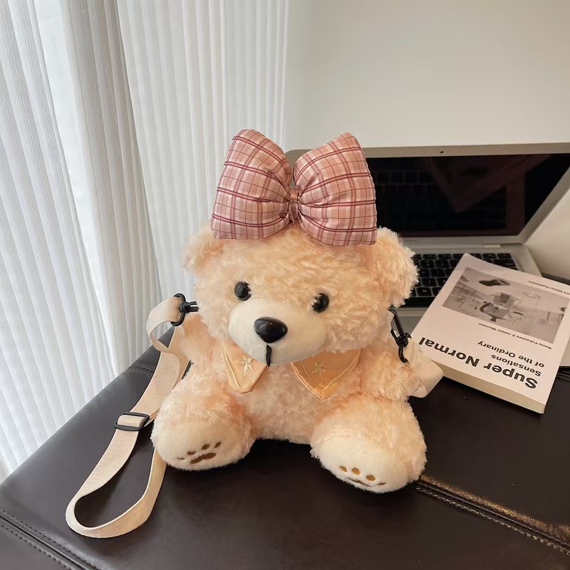 跨境外贸小熊卡通玩偶公仔包可爱女童毛绒玩具包单背斜挎包