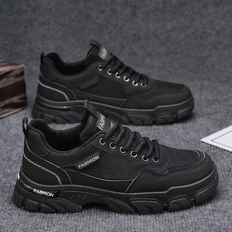 工装板鞋男款2026新款春季网面透气男士休闲鞋子男厚底马丁靴男鞋