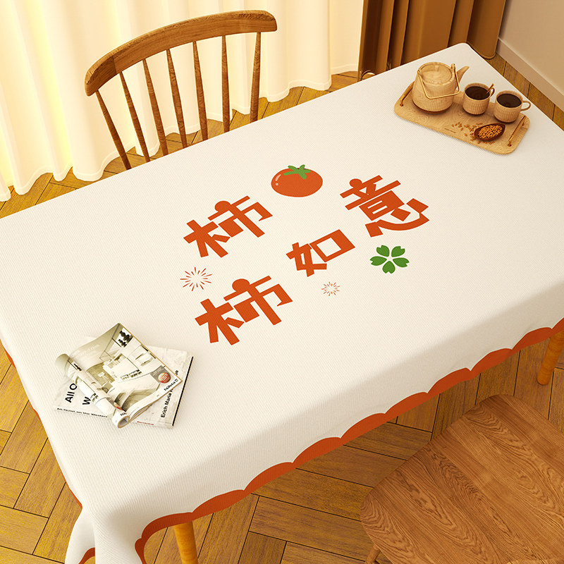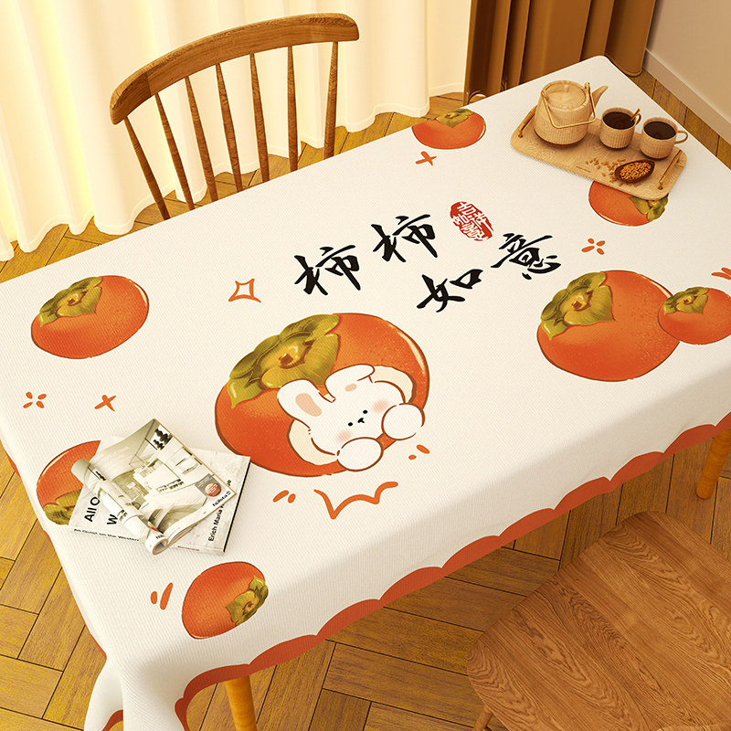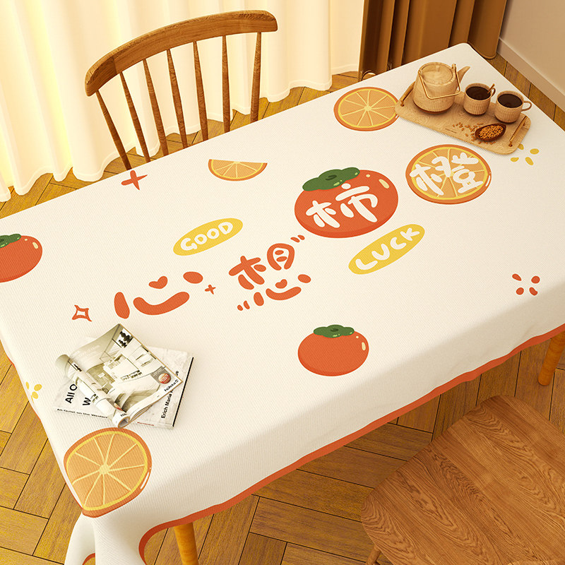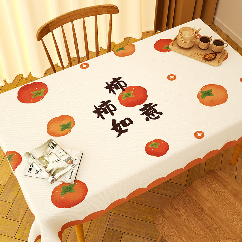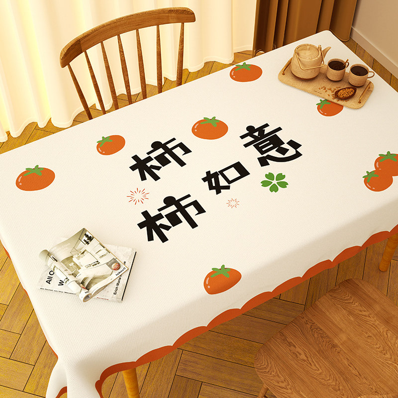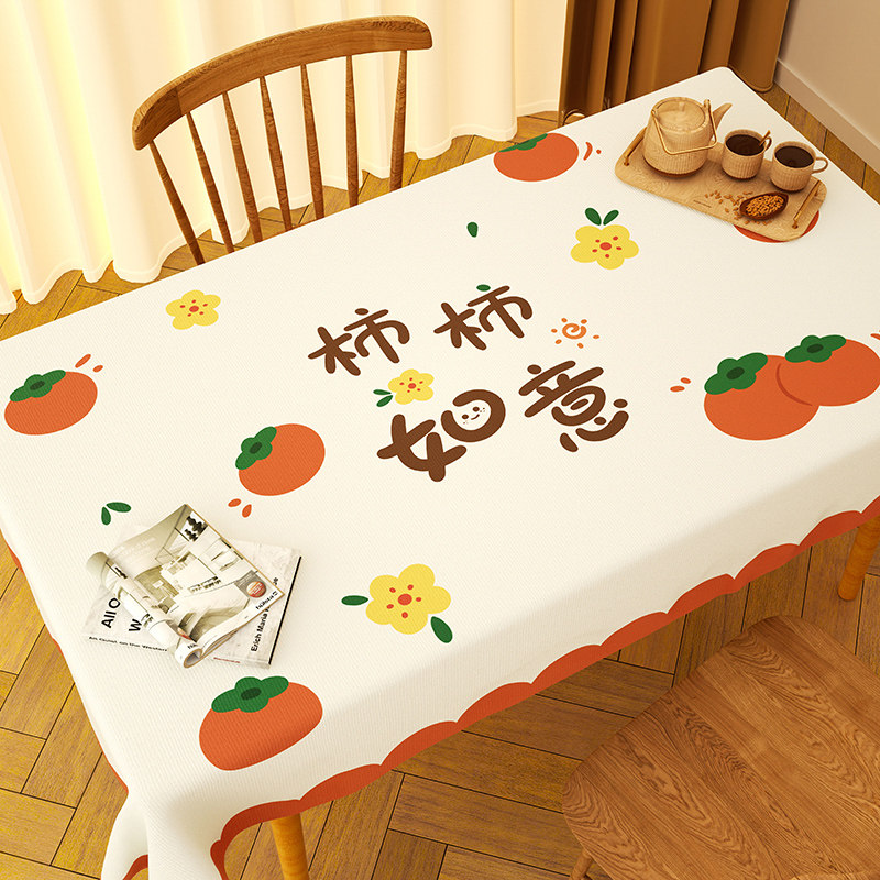 2026新款柿柿如意桌布防水防油免洗防烫pvc茶几台布长方形餐桌布