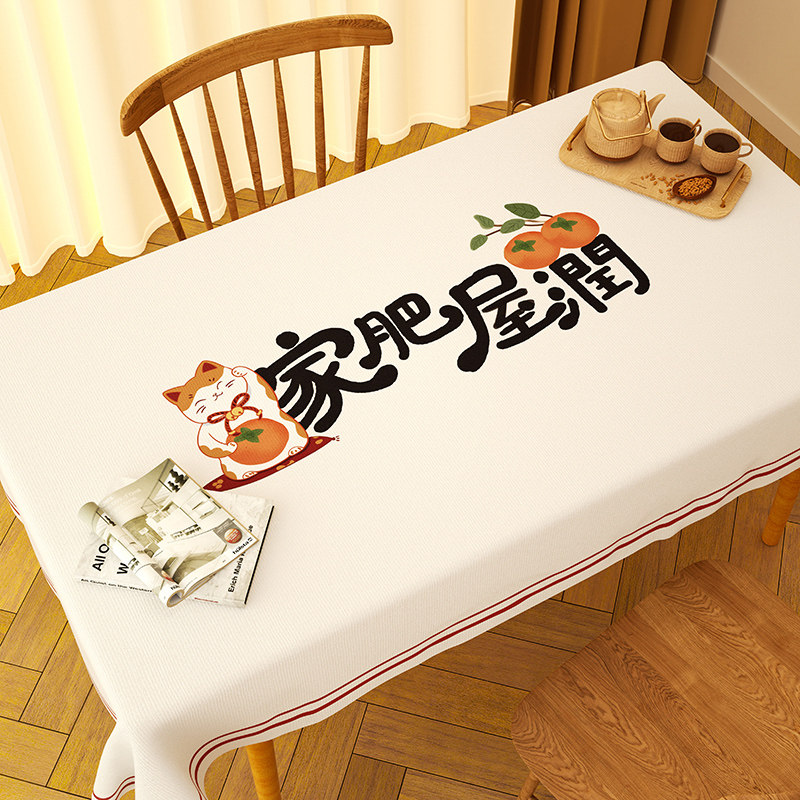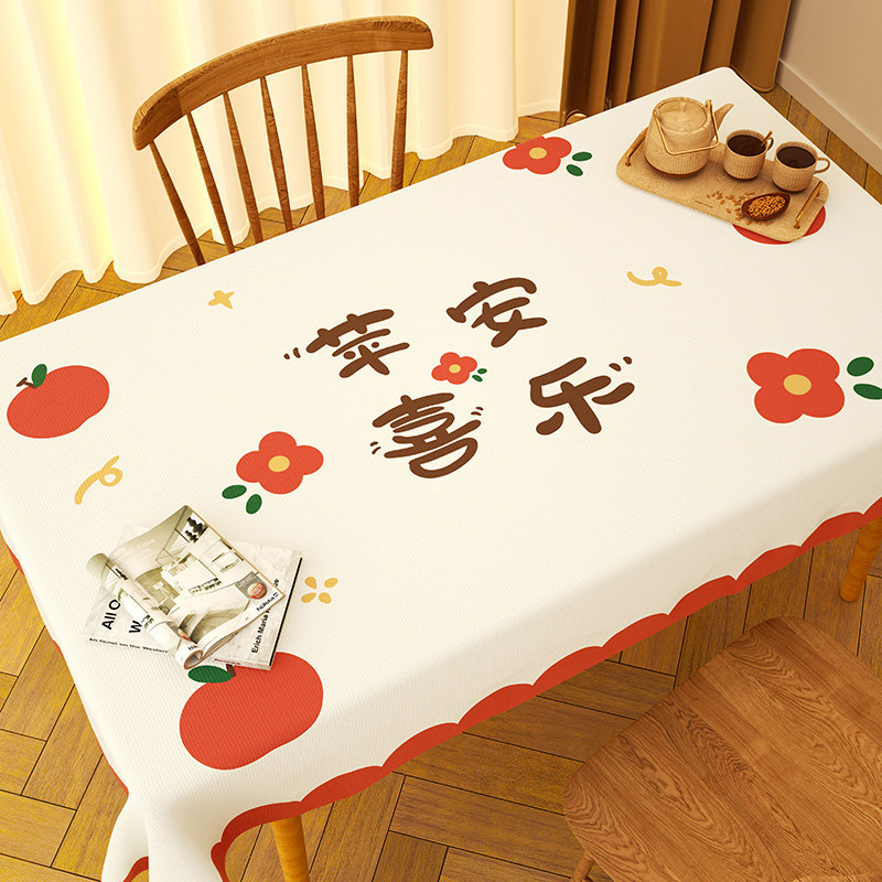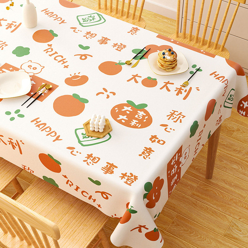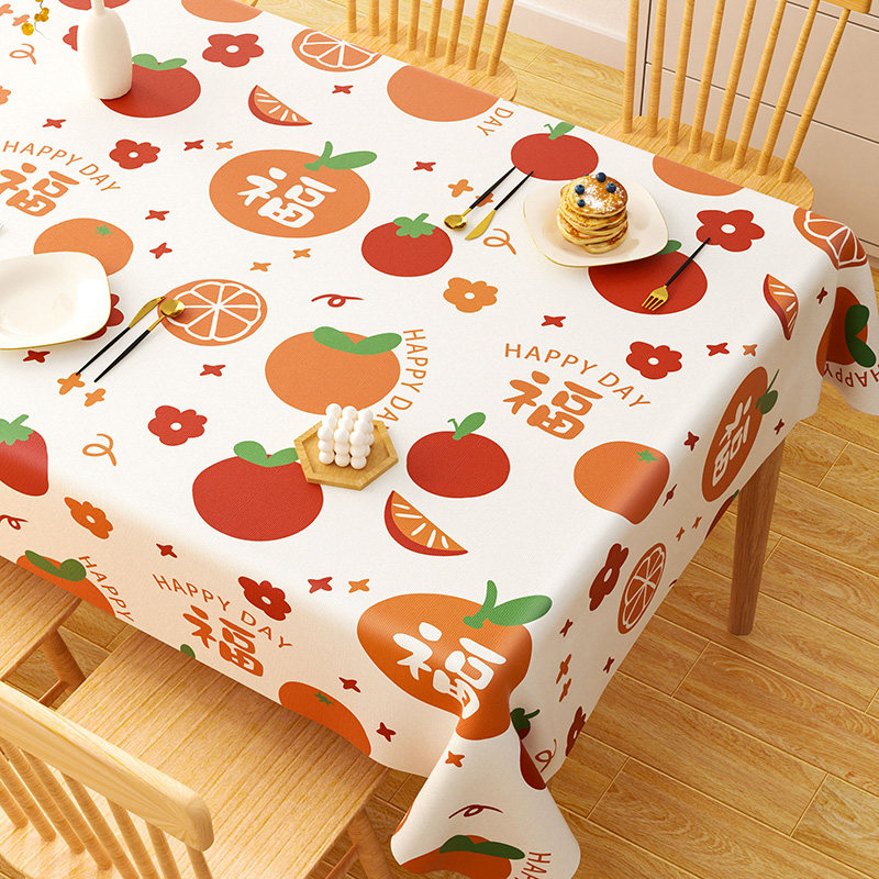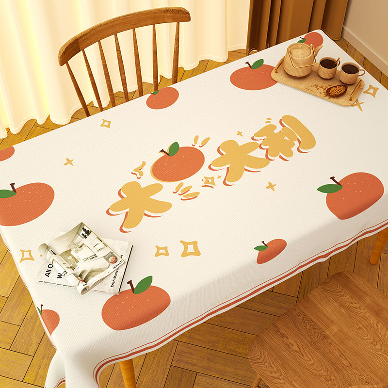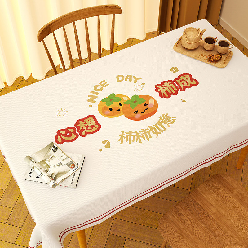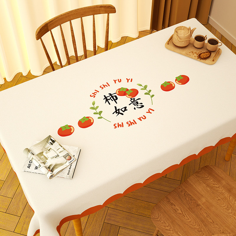 2026新款柿柿如意桌布防水防油免洗防烫pvc茶几台布长方形餐桌布