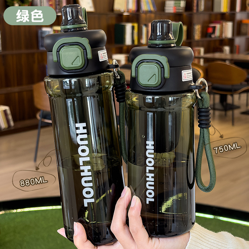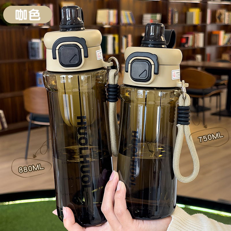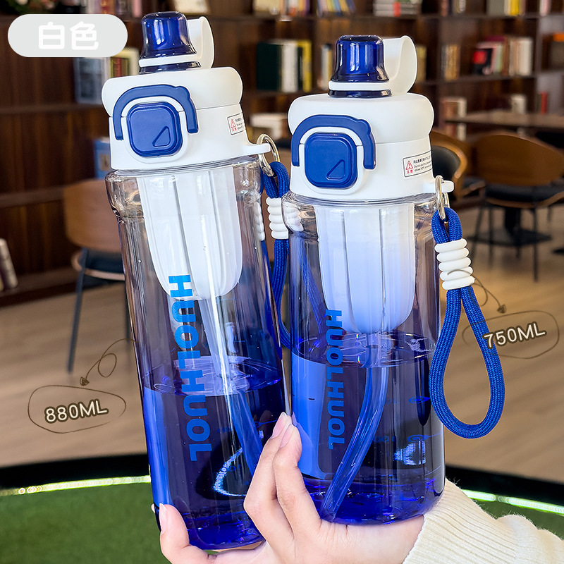 星芒双饮弹跳塑料杯健身运动吸管杯学生户外便携带提绳水杯带刻度