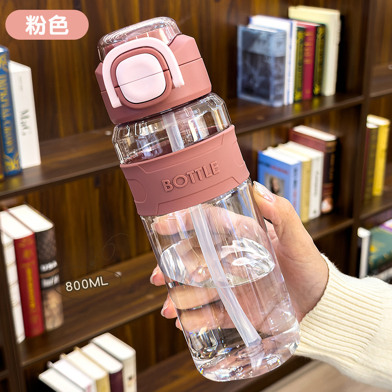 夏季户外大容量吸管杯健身运动弹跳盖水杯男女便携带提绳PC吸管杯