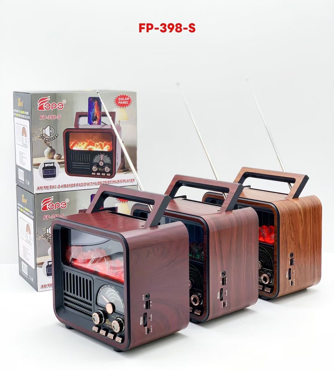 新款FP-398-S火焰灯太阳能蓝牙音箱手提户外收音机插卡低音炮音响