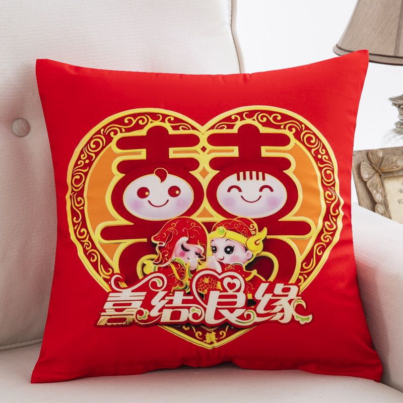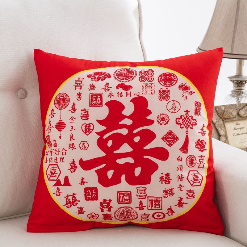 双面新款结婚抱枕新婚靠枕婚房装饰喜庆靠垫婚庆婚礼沙发喜字抱枕