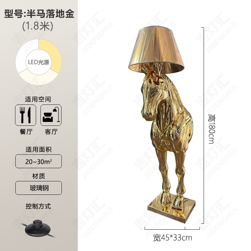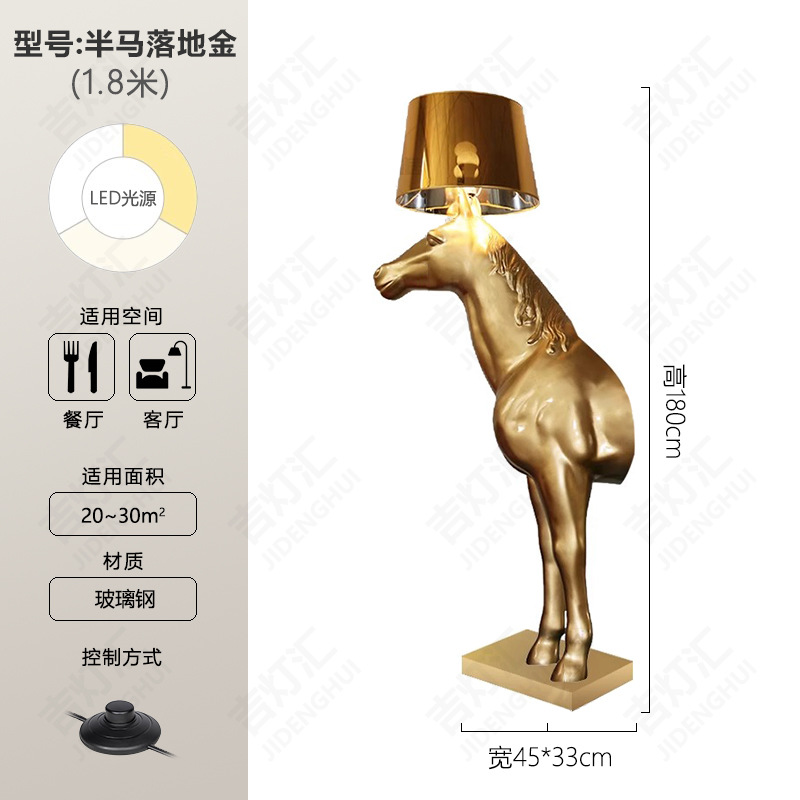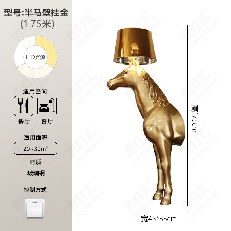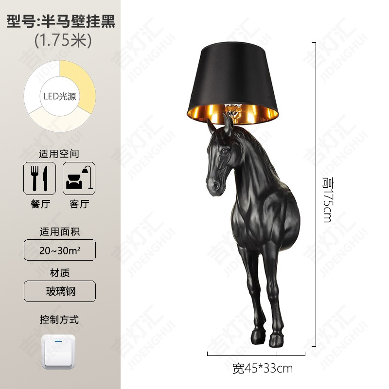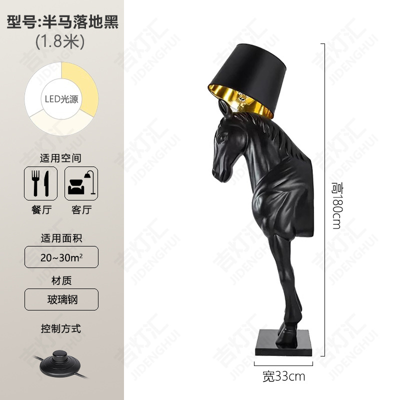 创意半身马雕塑灯别墅酒店大堂室内玄关北欧装饰工艺品落地摆件灯