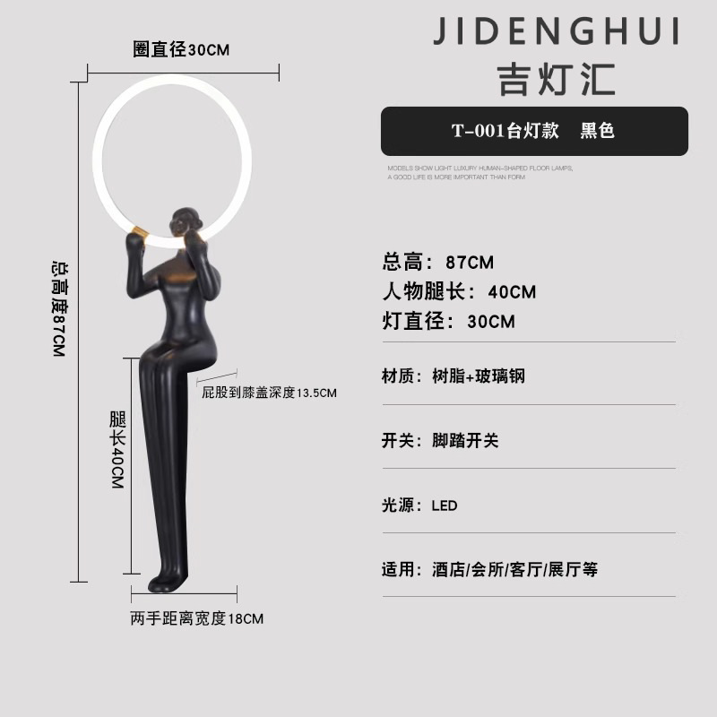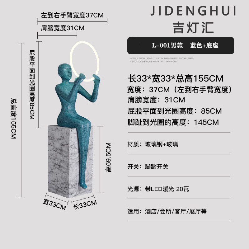 设计师人形雕塑落地灯美容店会所玻璃钢大型人物摆件落地式LED