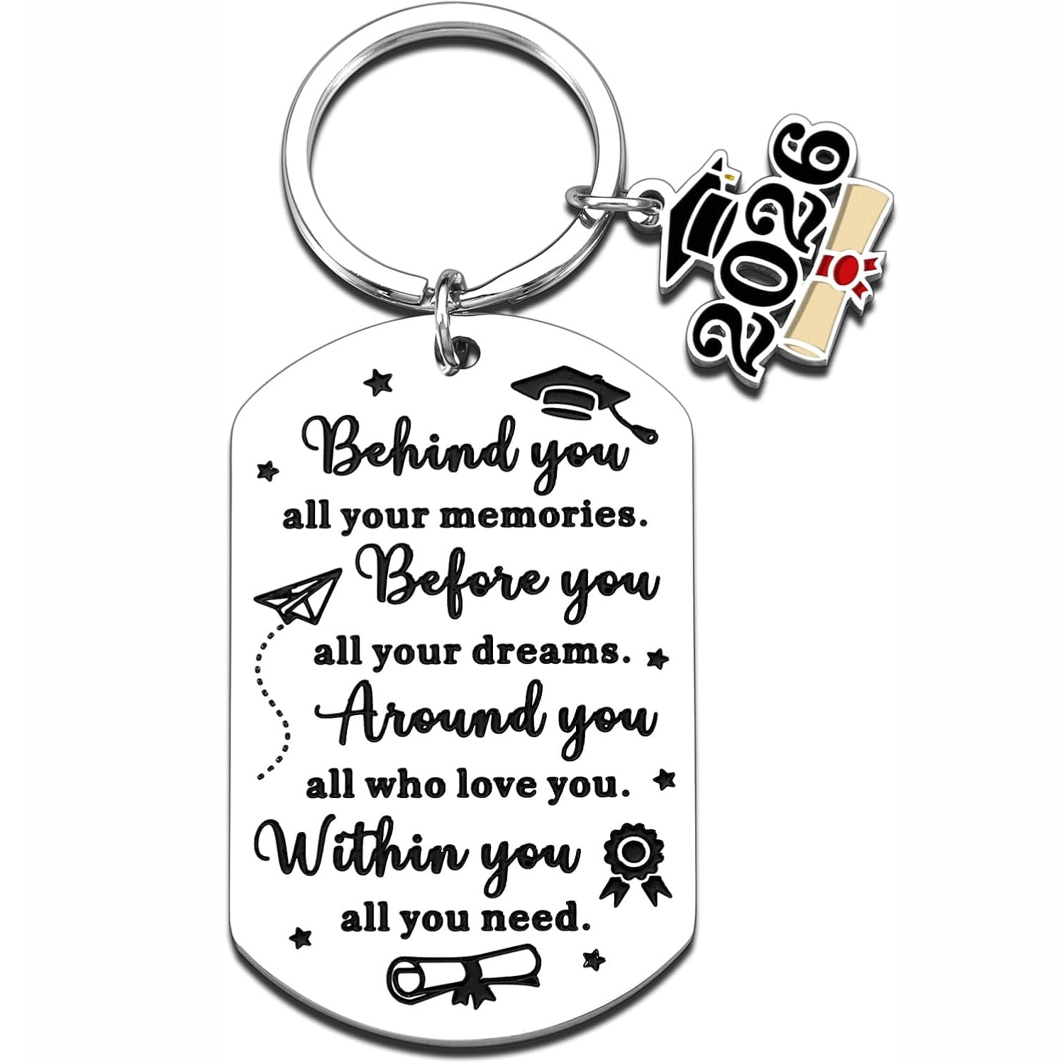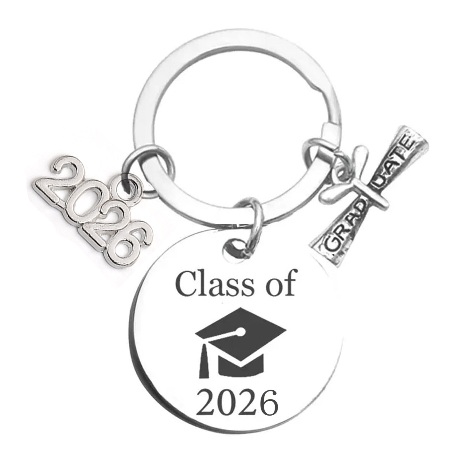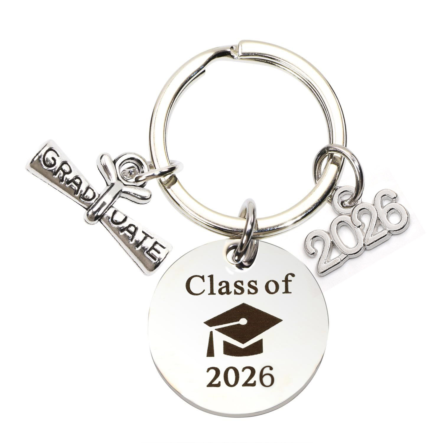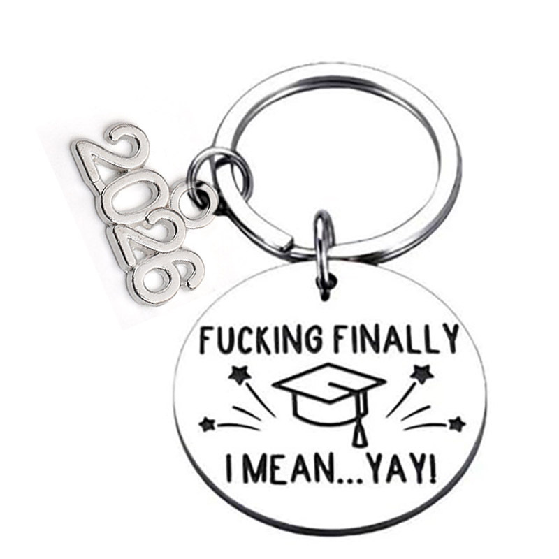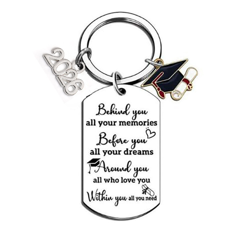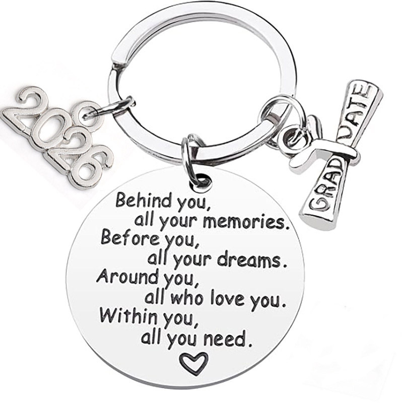 2026毕业季钥匙扣圆牌博士帽激光打标毕业季礼物不锈钢圆牌钥匙扣