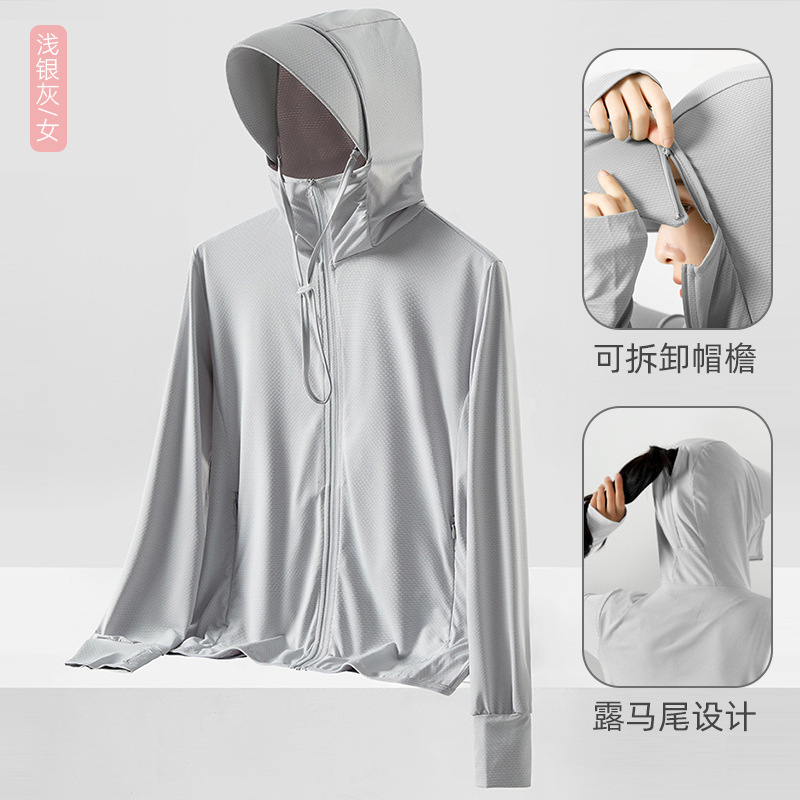 UPF50+冰丝防晒衣男薄款夏防紫外线大帽檐女防晒服户外皮肤衣定制