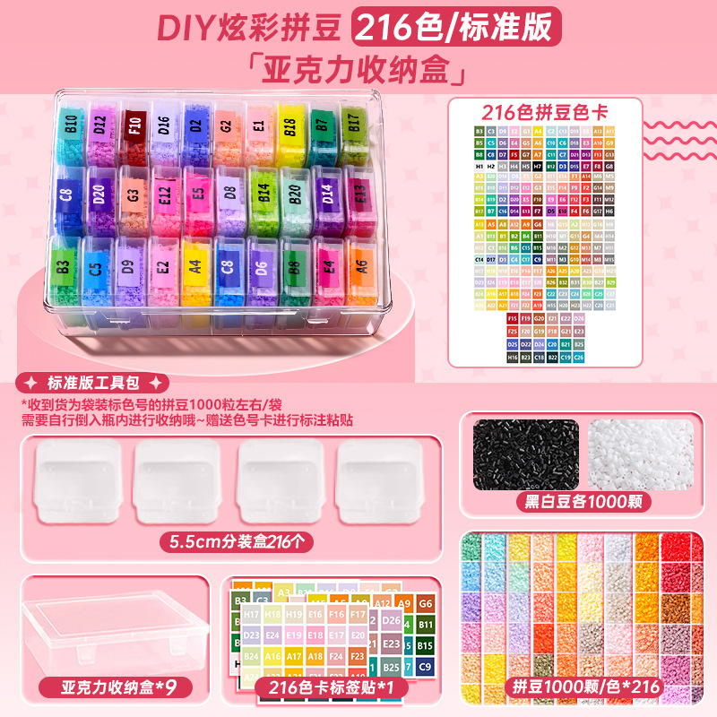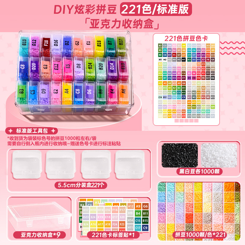 拼豆材料包全套拼豆融合豆2.6mm拼豆补充包221色MARD同款DIY玩具