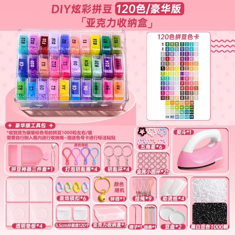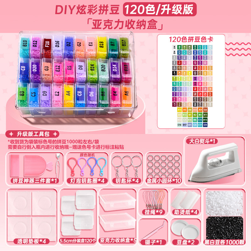 【熨斗+120色升级盒装】送全套收纳盒+色号贴纸+黑白豆2000