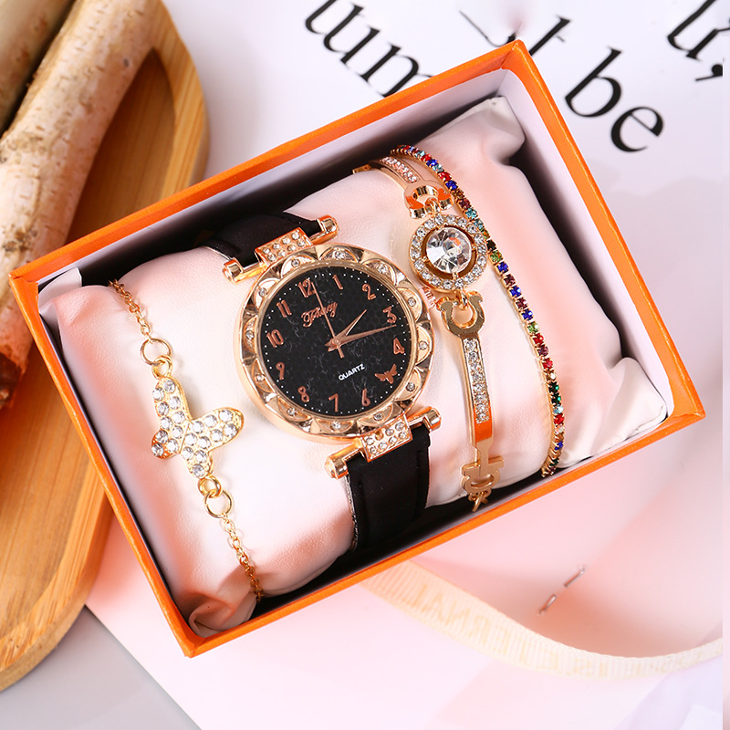 黑色5件套:手表+手链*3+精美礼盒