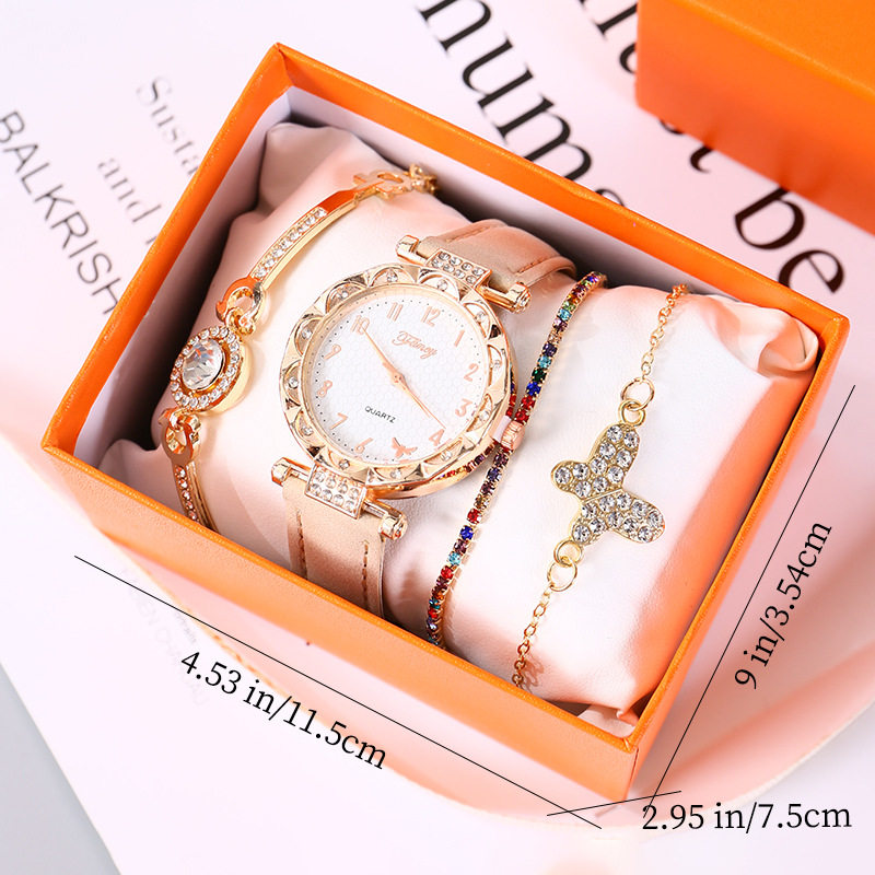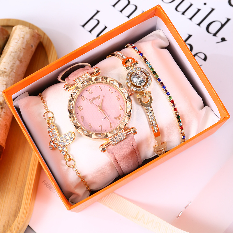 粉色5件套:手表+手链*3+精美礼盒