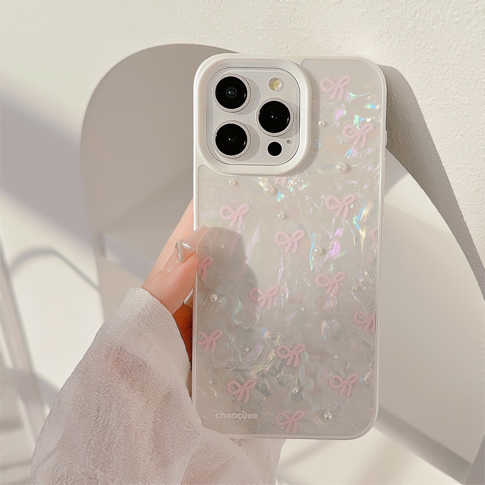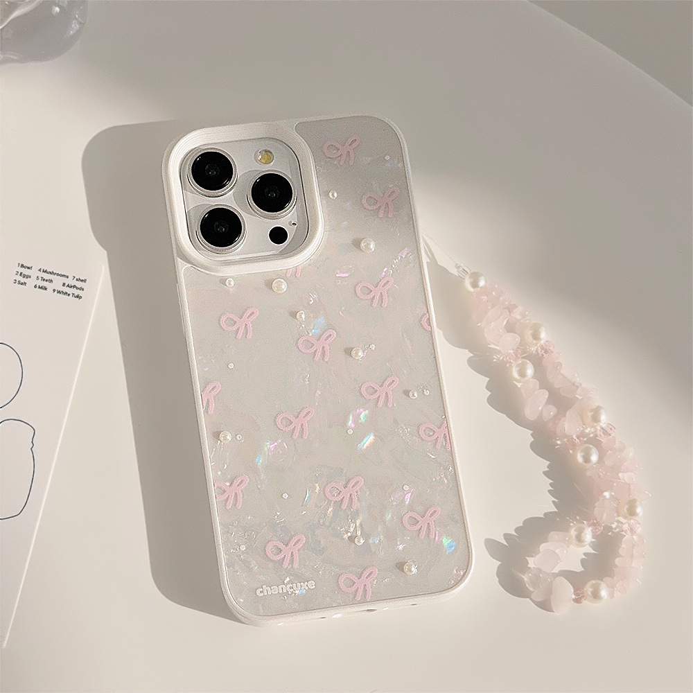 立体珍珠粉色蝴蝶结适用苹果16手机壳iphone17手链15promax贝壳12