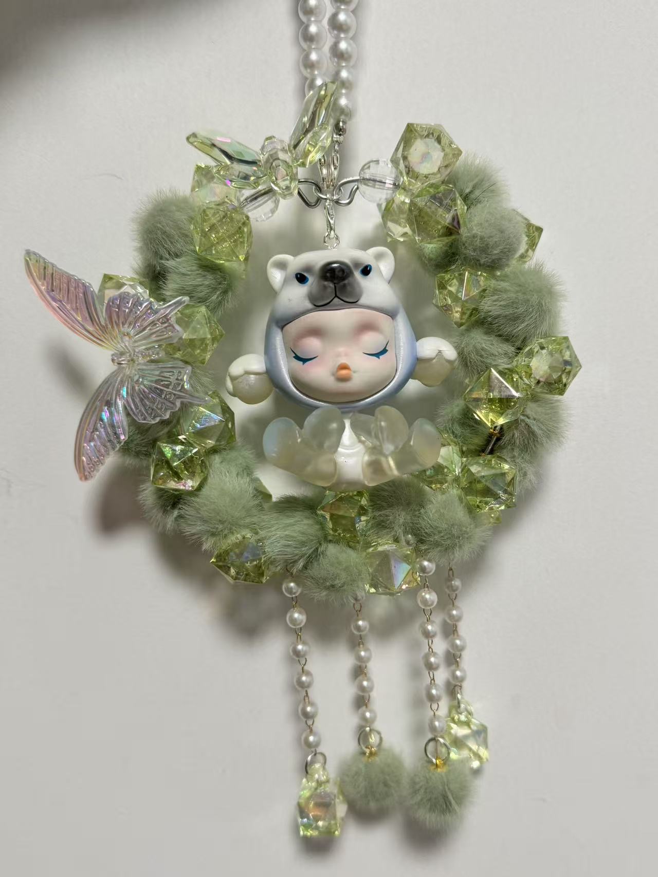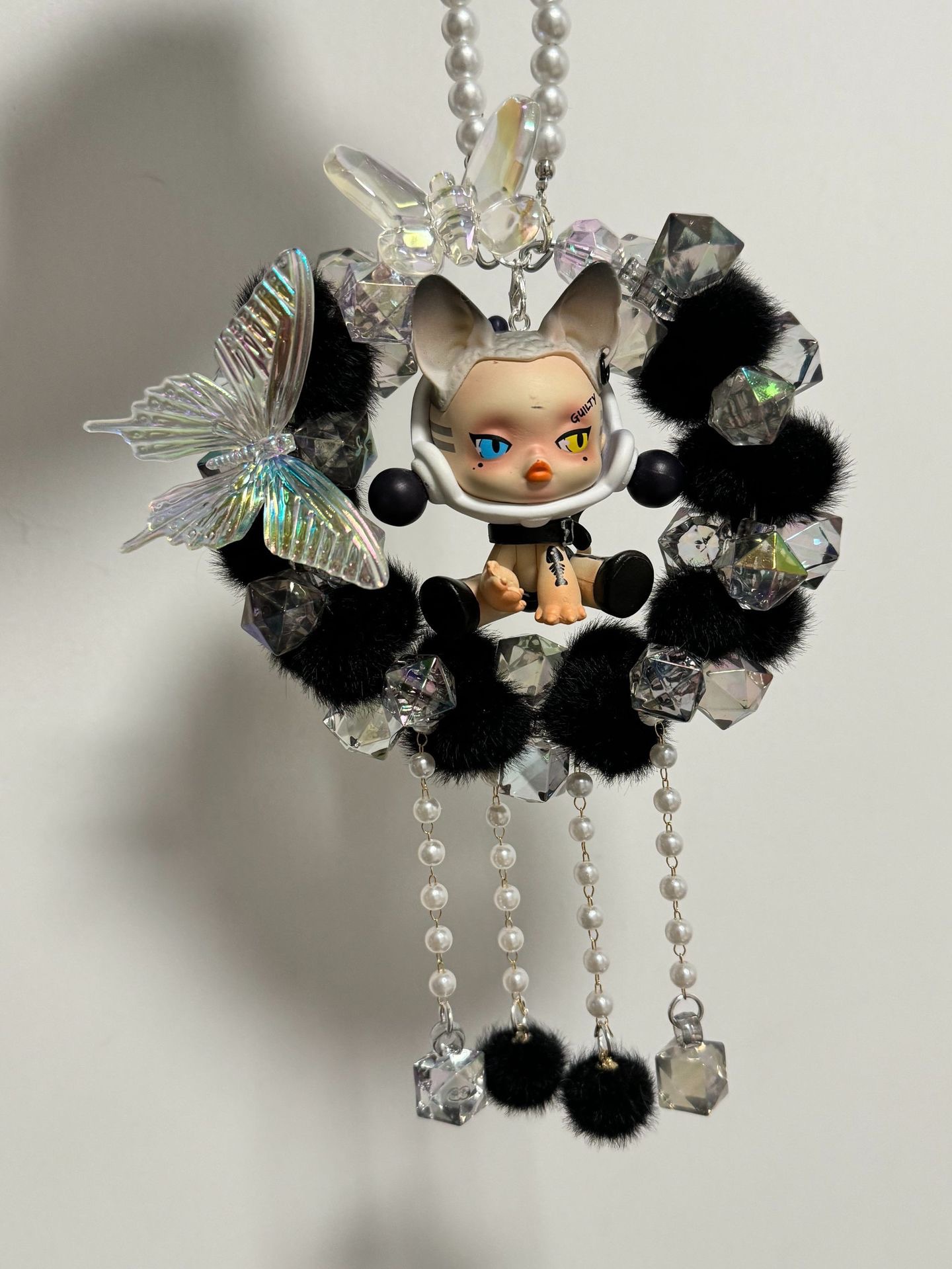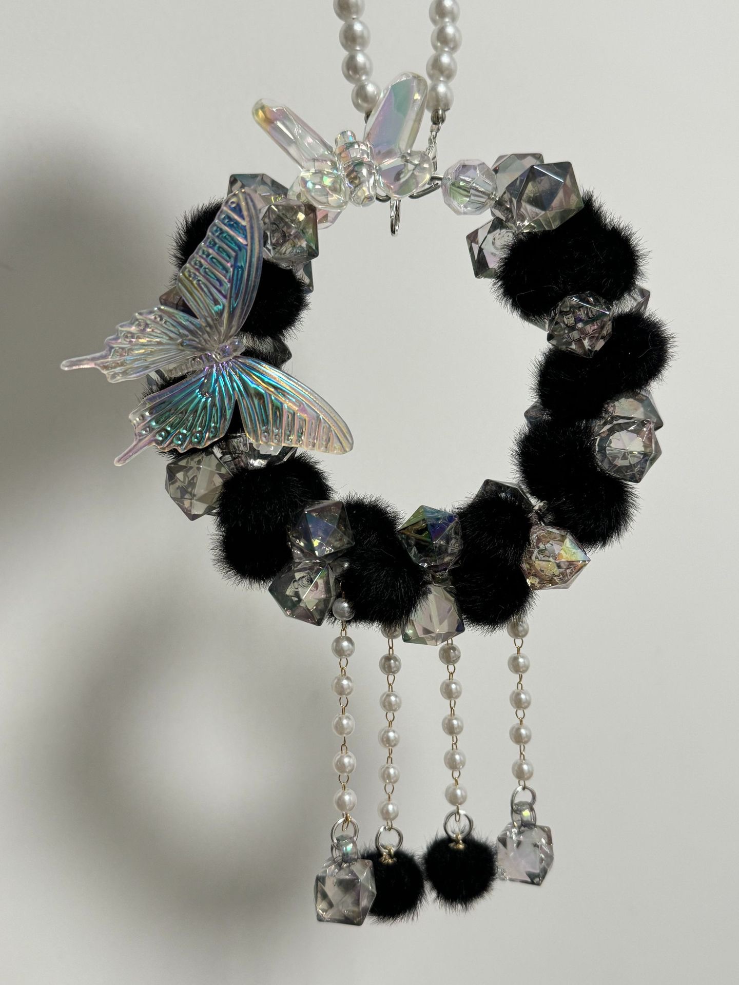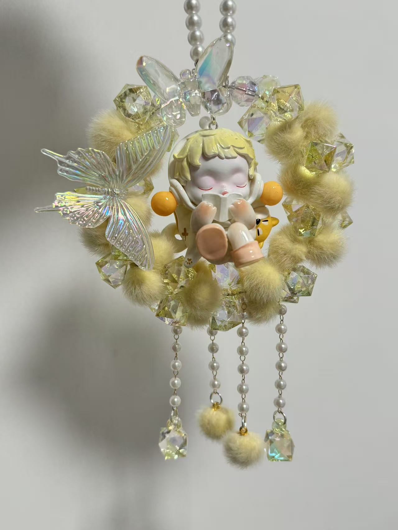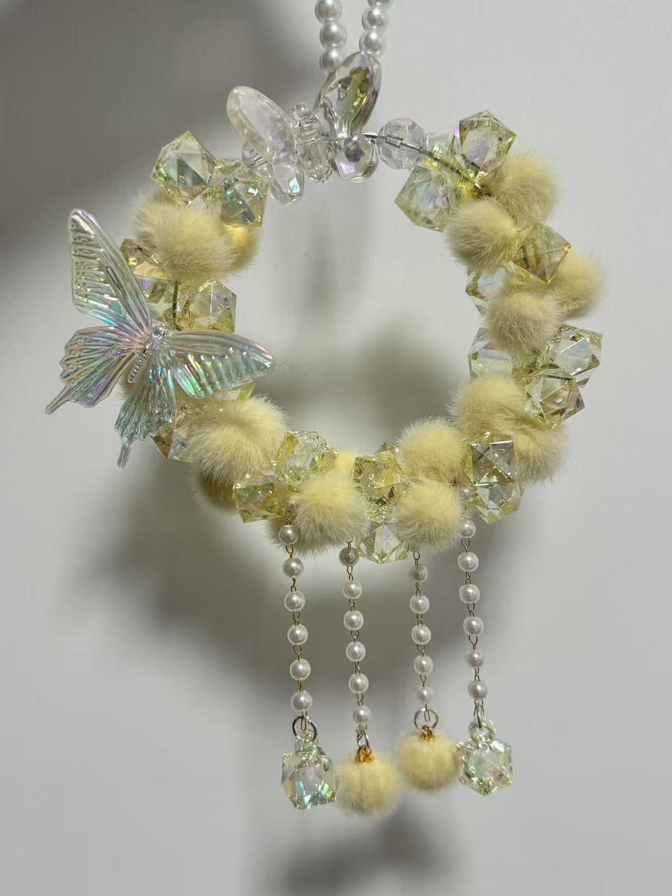 车载后视镜挂件毛球蝴蝶重工满圈车挂成品泡泡码特可爱女生礼物