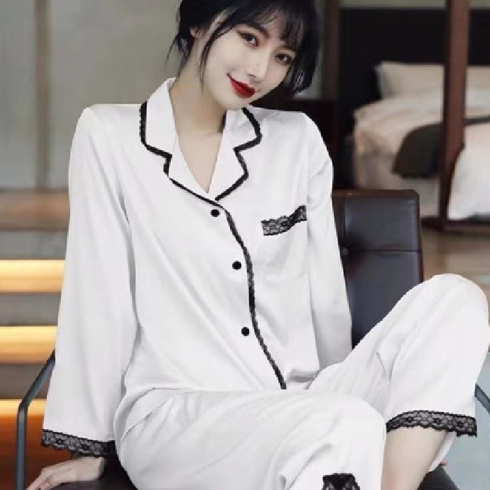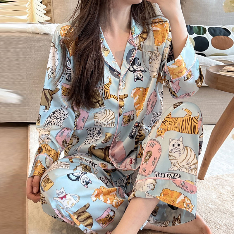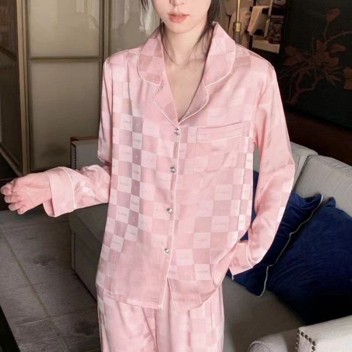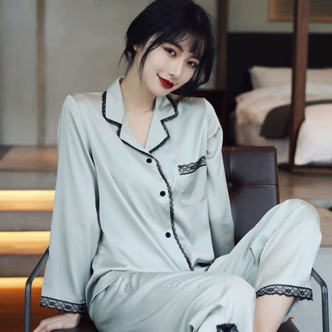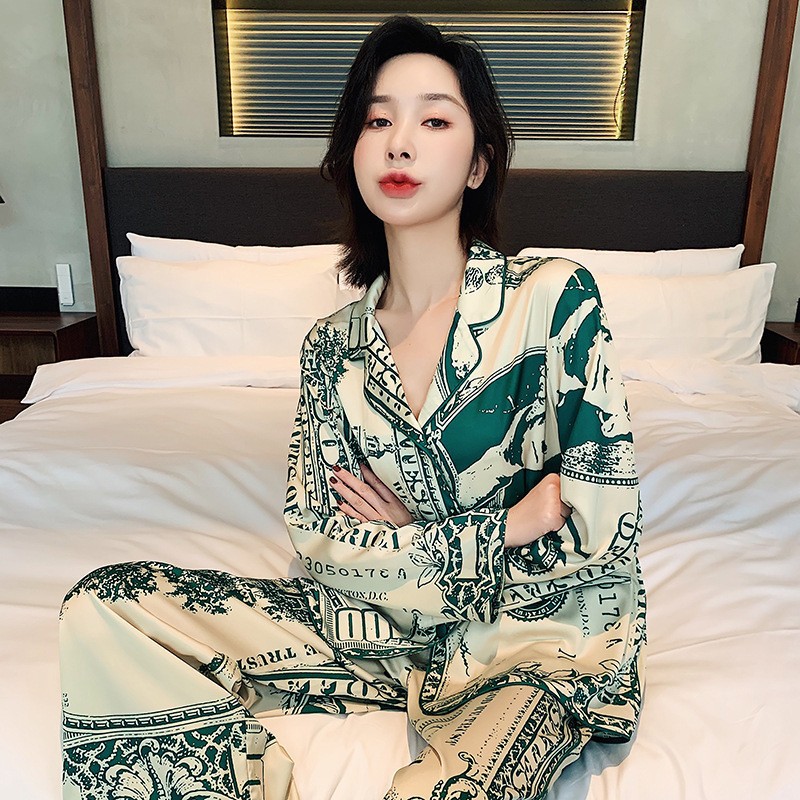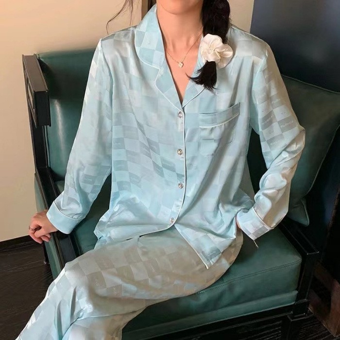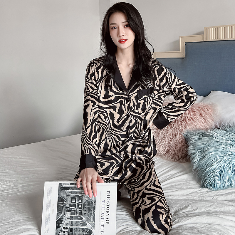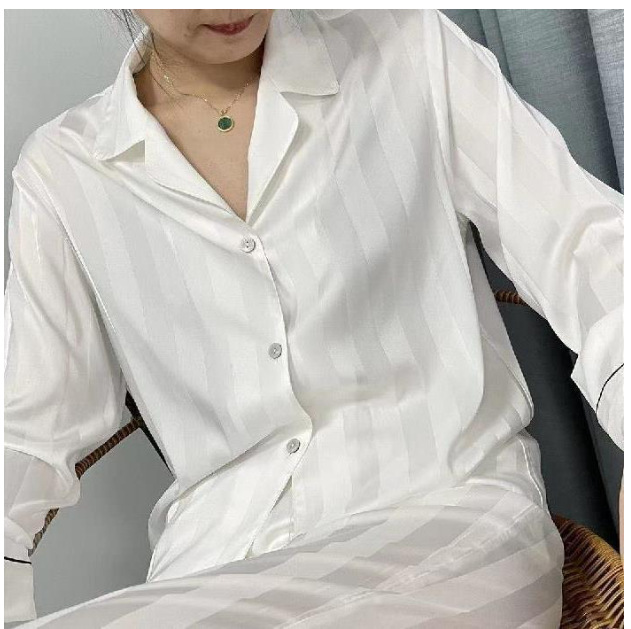 直播睡衣女春秋季冰丝长袖家居服仿真丝绸韩版条纹高级感长裤套装