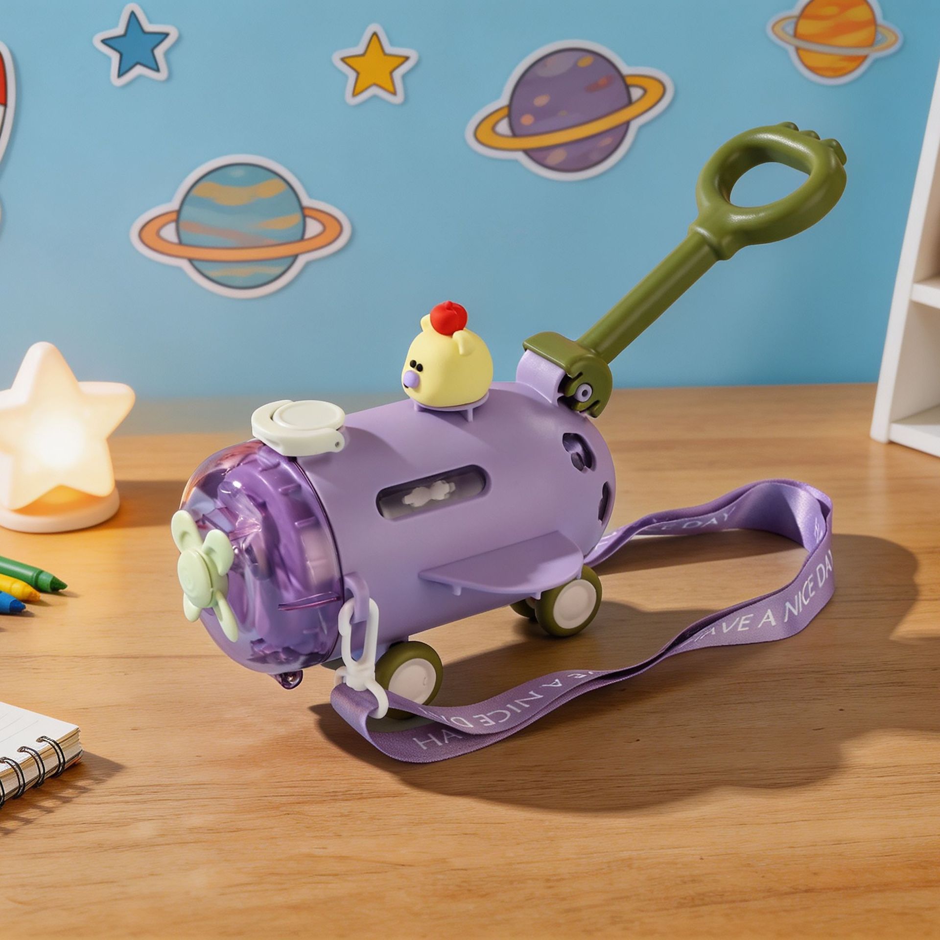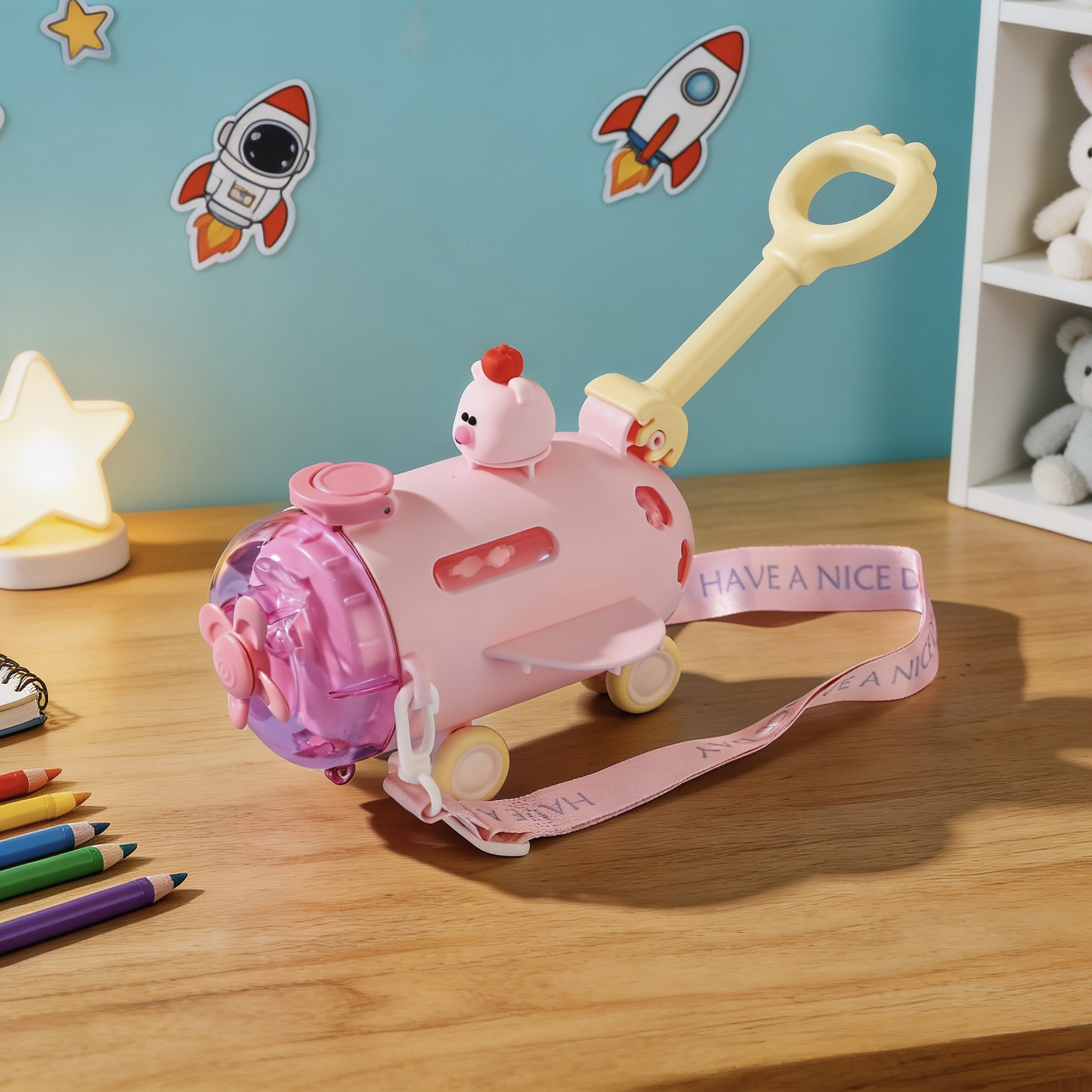 儿童创意萌趣卡通小飞机塑料水杯户外背带水杯手推飞机儿童壶