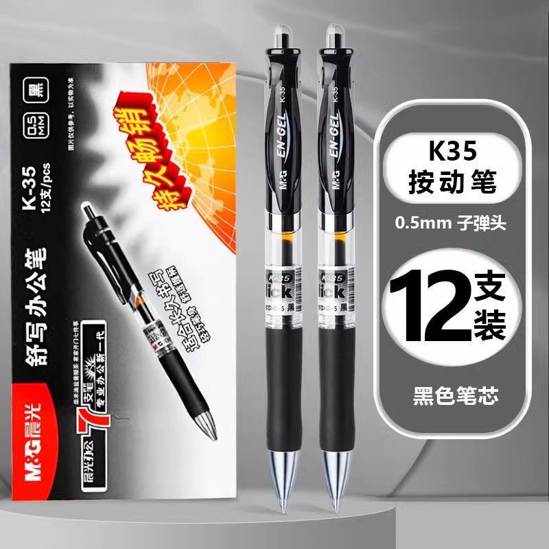 晨/光K35中性笔0.5mm按动签字笔会议笔黑红蓝水笔学生学习办公用