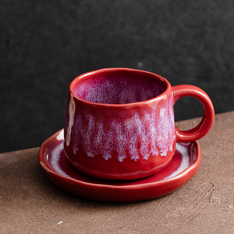 咖啡陶瓷杯碟复古拿铁下午茶ins风浮雕拉花杯咖啡杯套装马克杯