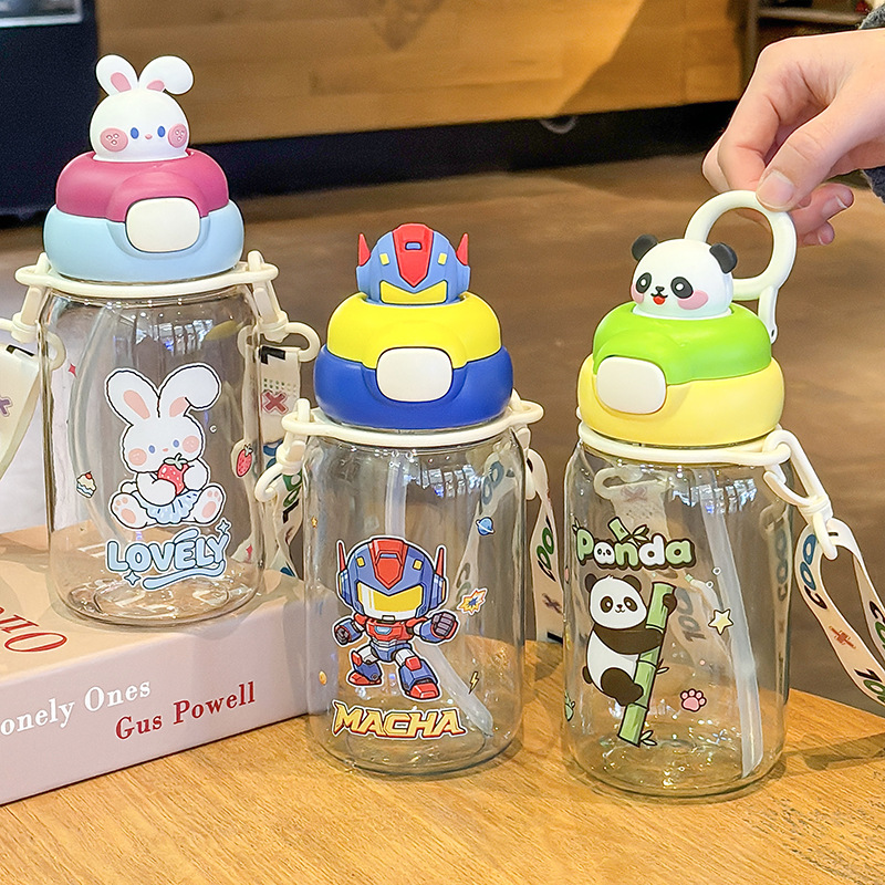 高颜值卡通吸管杯防漏大容量便携可斜挎水杯儿童学生背带水壶水瓶