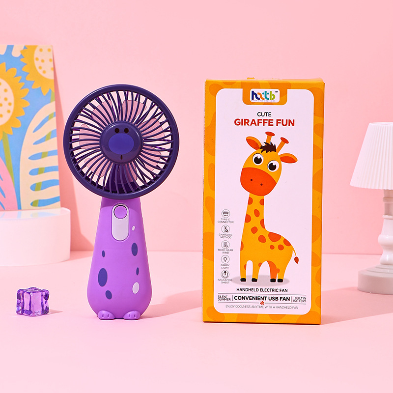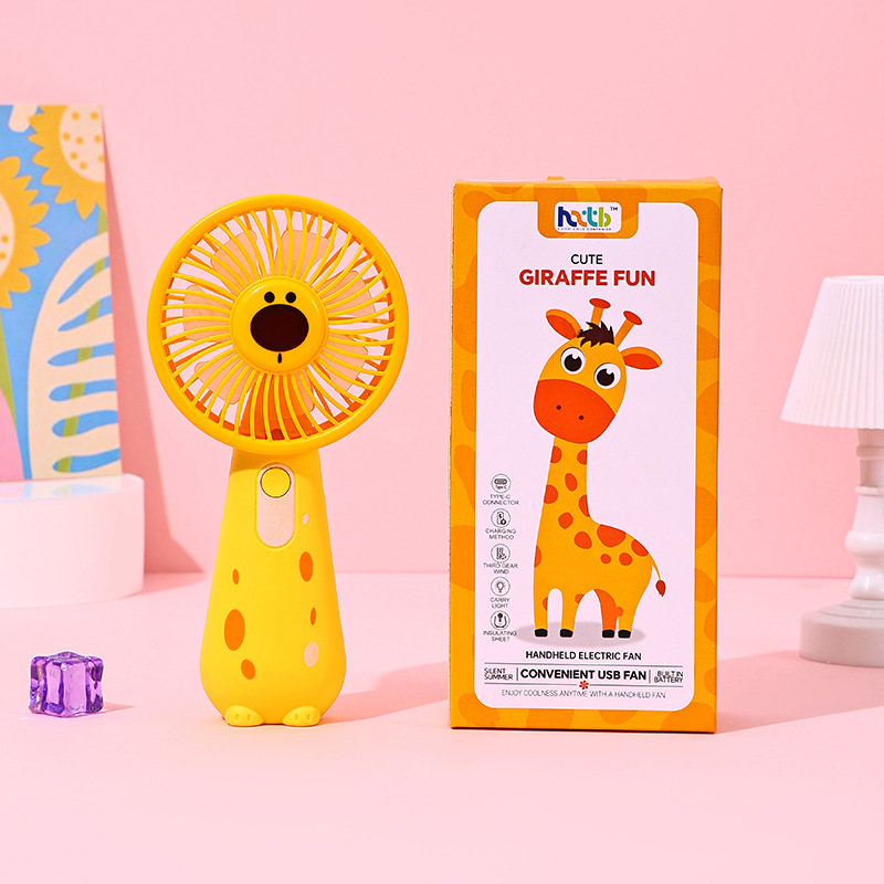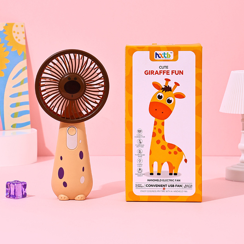 学生宿舍桌面长颈鹿小风扇USB充电三档锂电迷你便携式手持小风扇