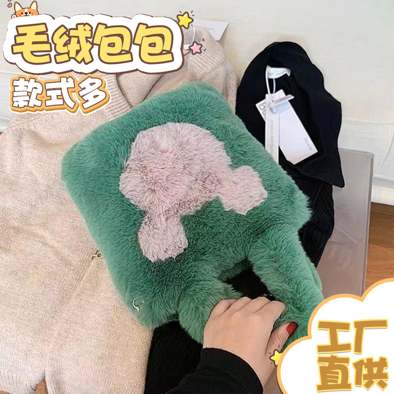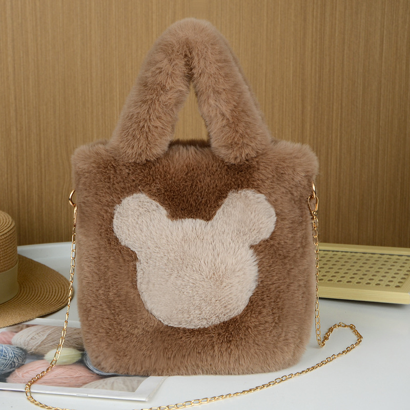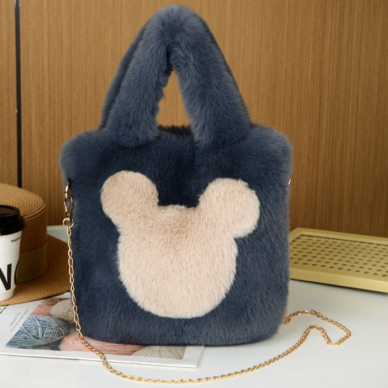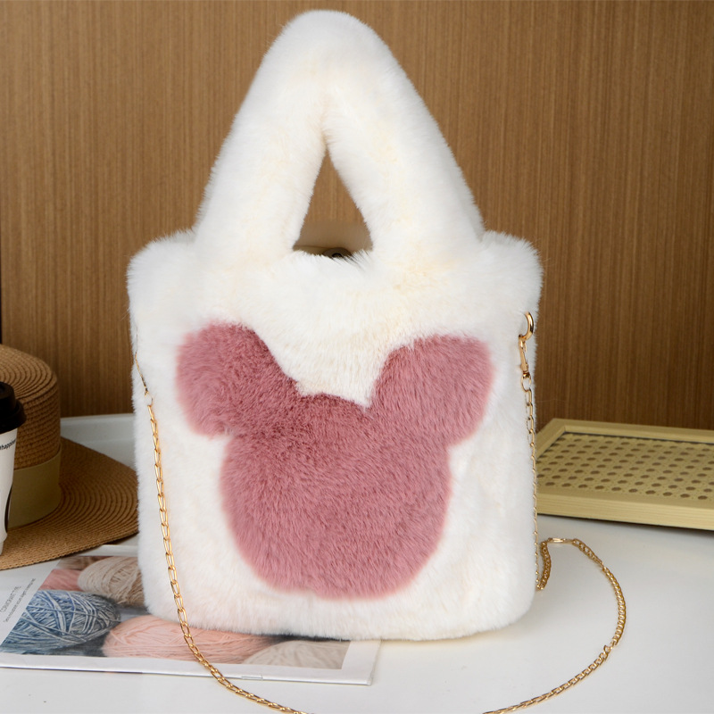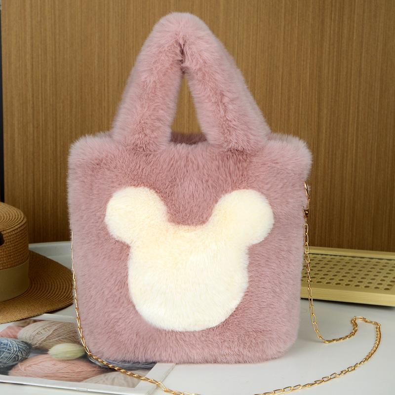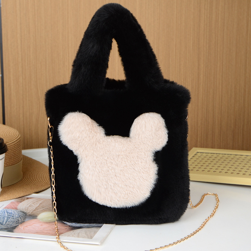 毛绒包单肩斜挎包米奇毛绒包包大容量通勤手提包托特包手拎收纳