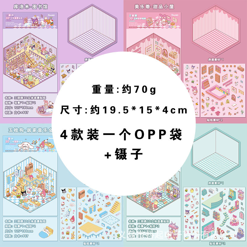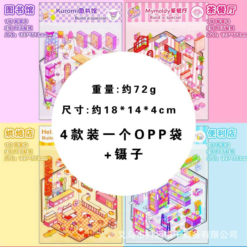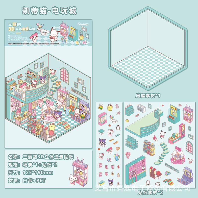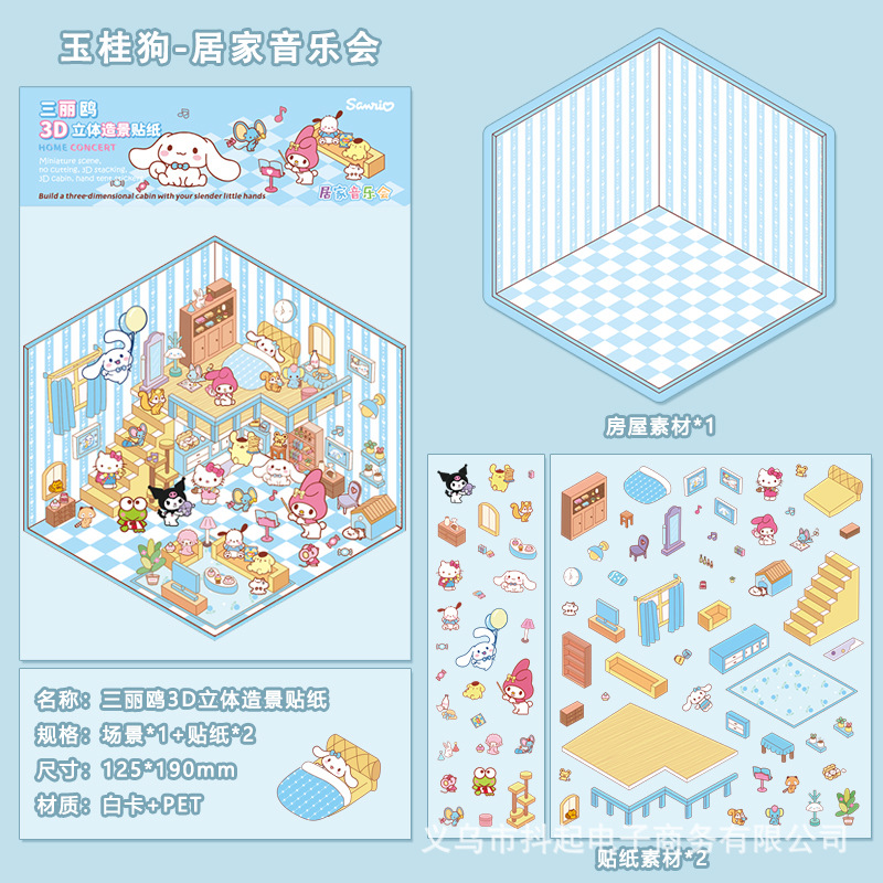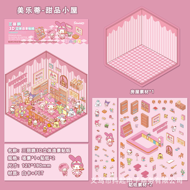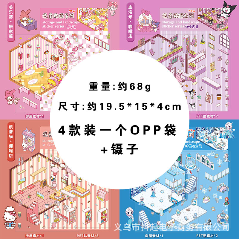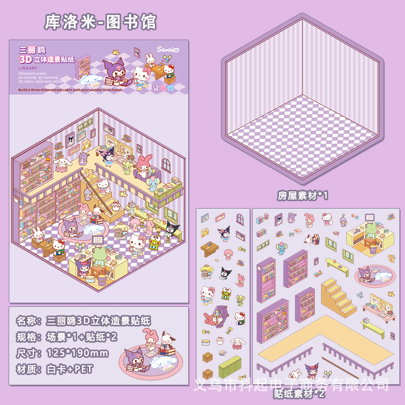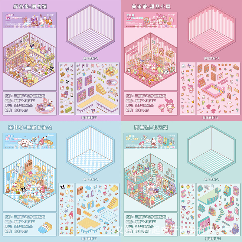 三丽鸥微缩场景贴纸立体小屋拼贴造景手帐素材diy手帐小贴画免剪