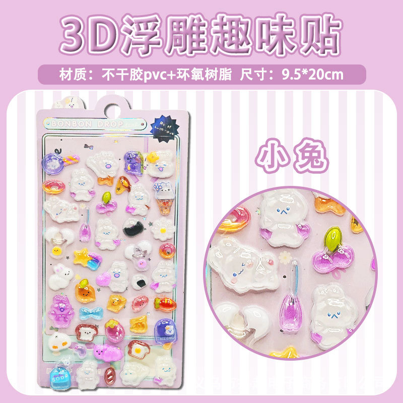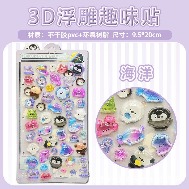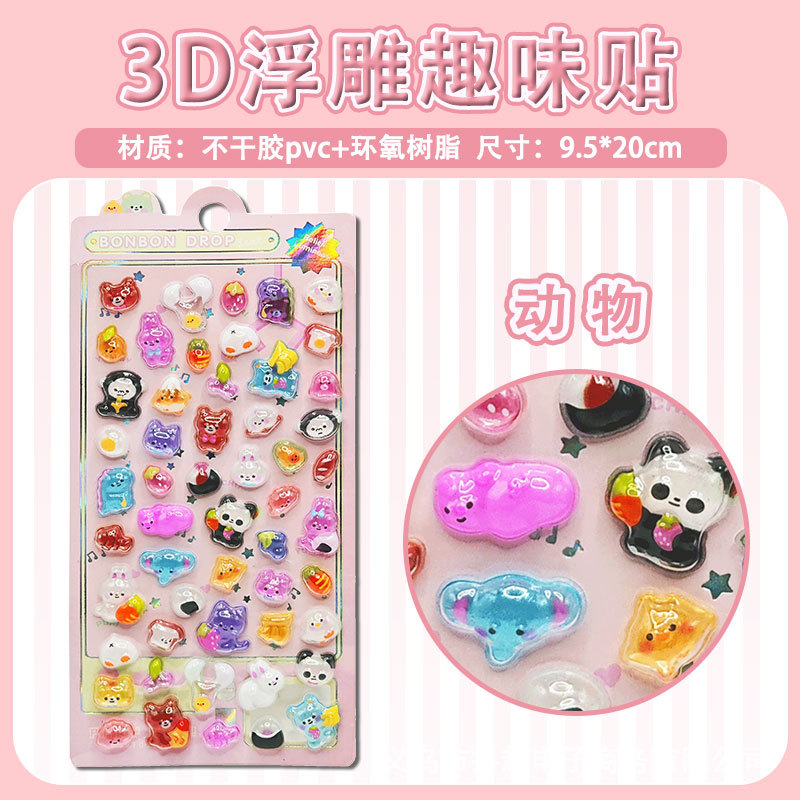 新款儿童可爱3d立体趣味浮雕水晶贴纸卡通动物图案女孩手机装饰贴
