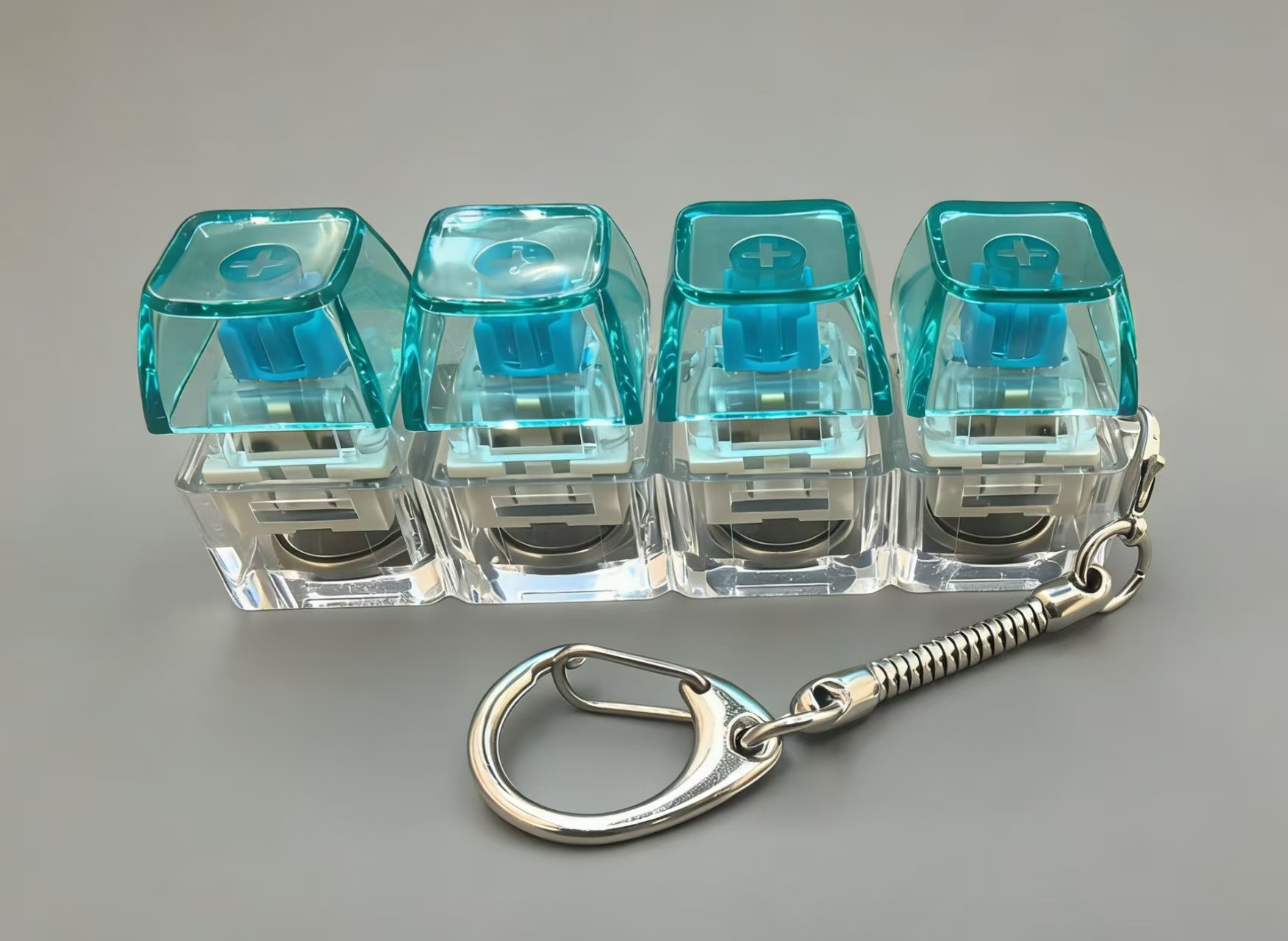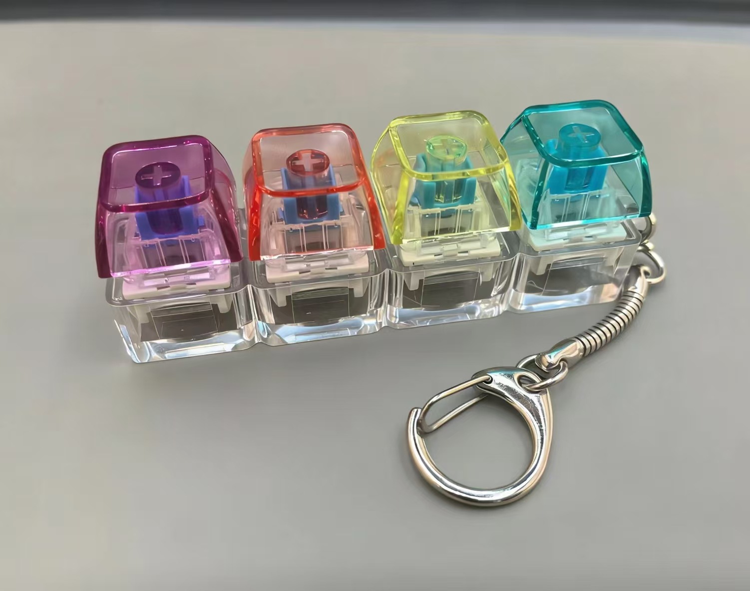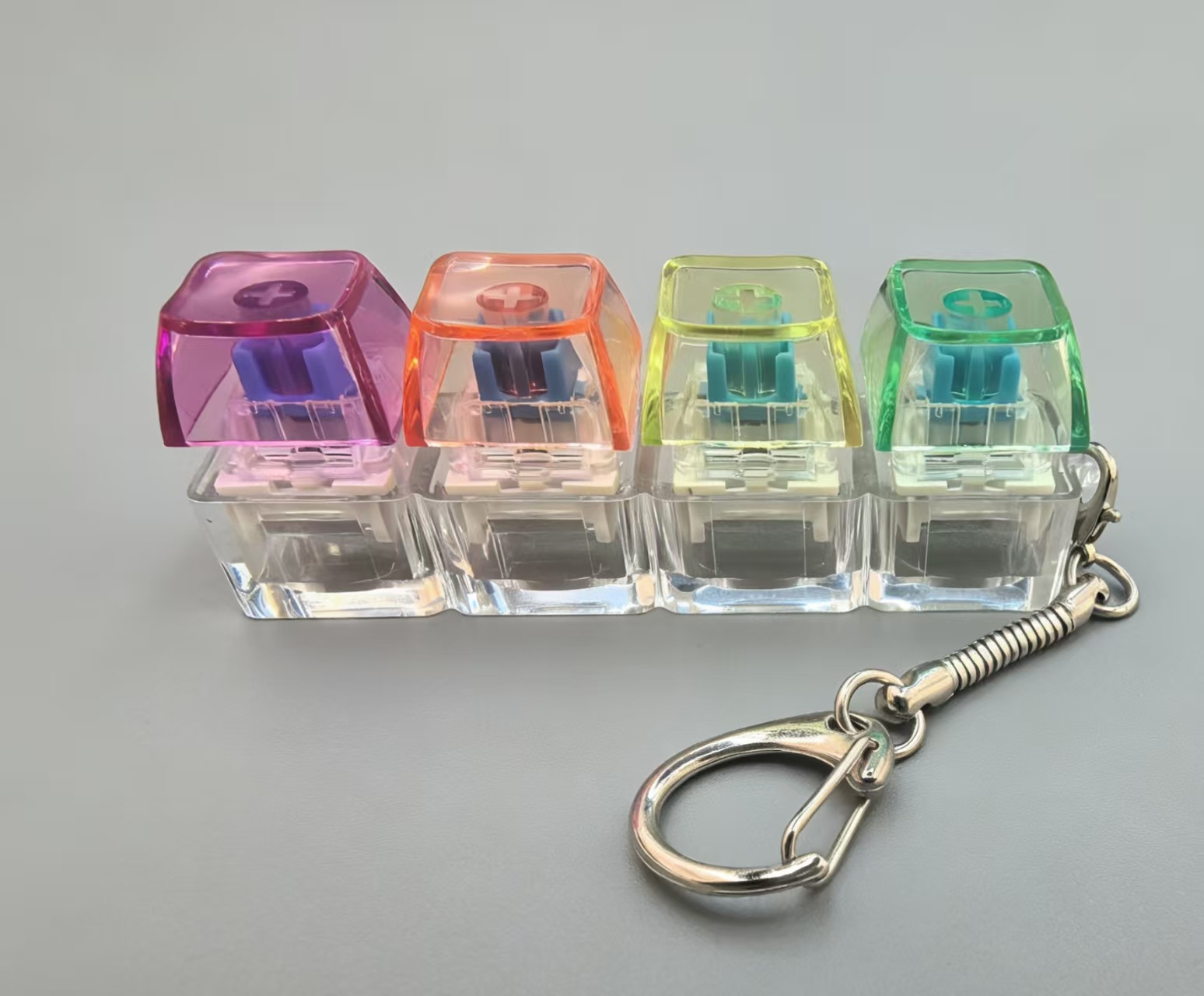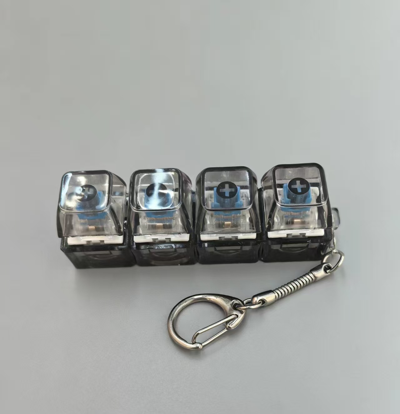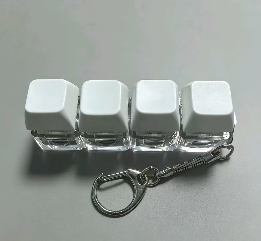 高透按键解压玩具机械键盘4键一字型发光解压键帽键盘钥匙扣挂件