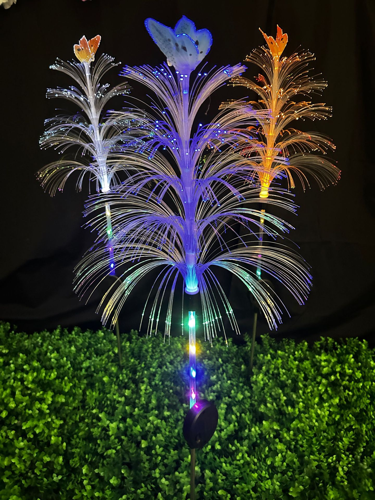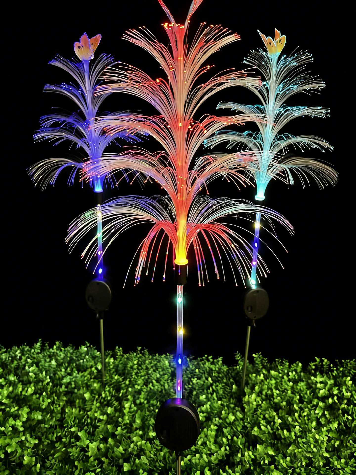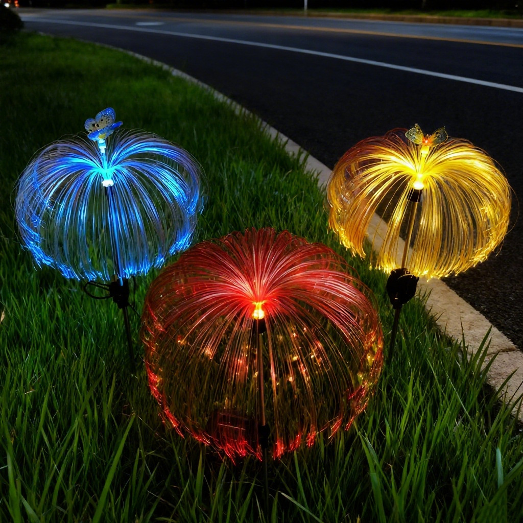 太阳能地插水母灯七彩变色圣诞装饰景观灯防雨庭院草坪光纤氛围灯