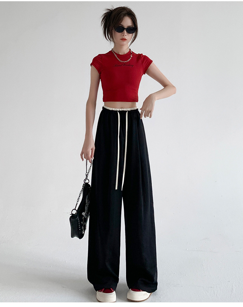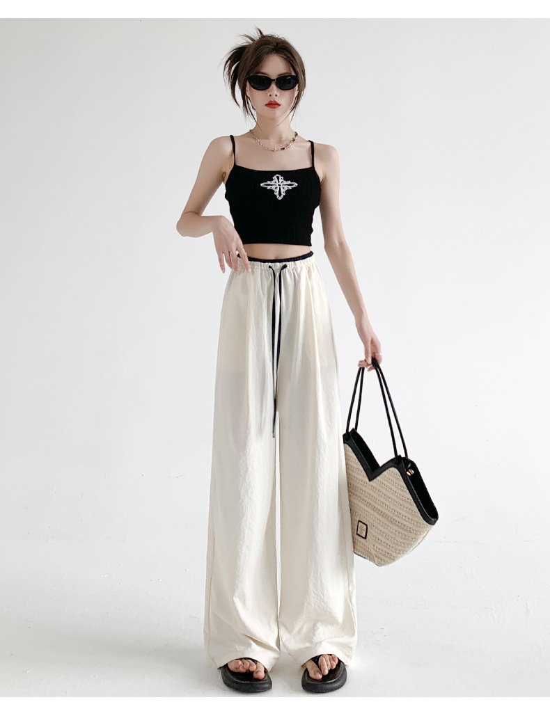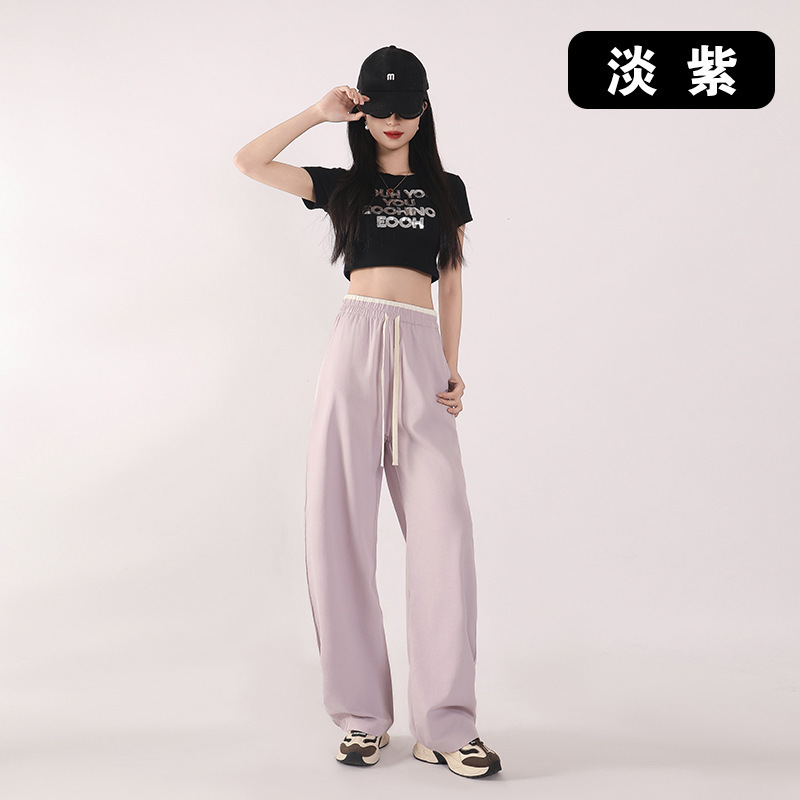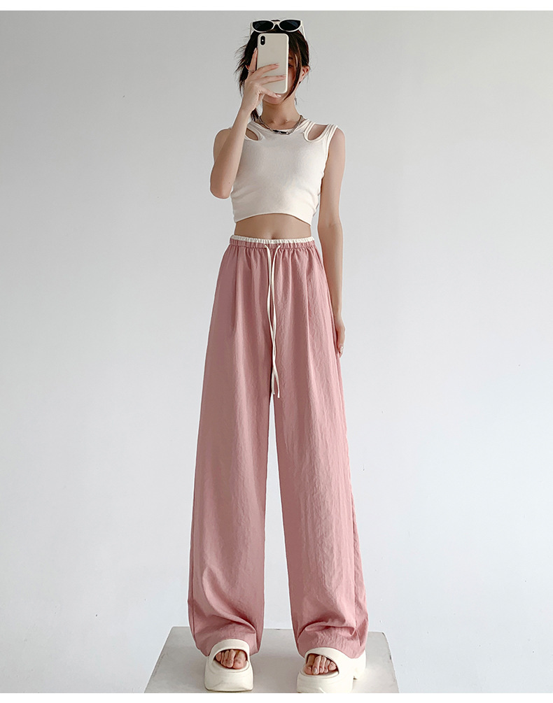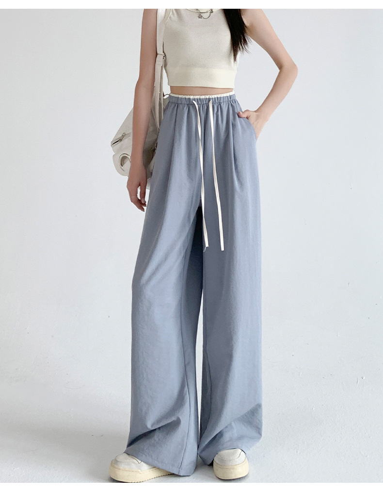 撞色阔腿裤女夏季2026肌理感高腰垂感休闲直筒长裤薄款冰丝女裤子
