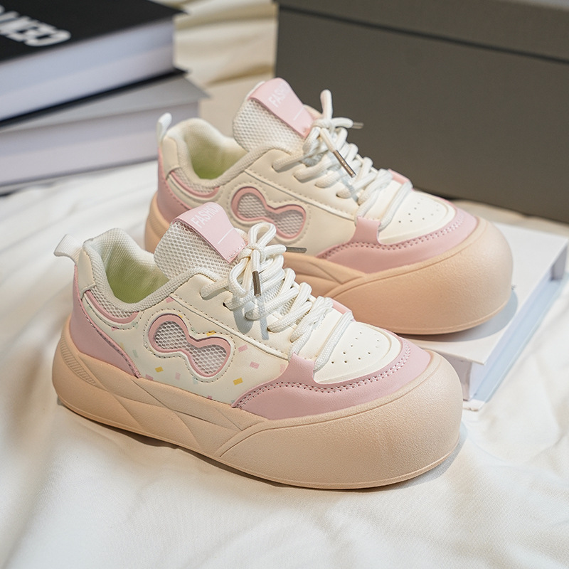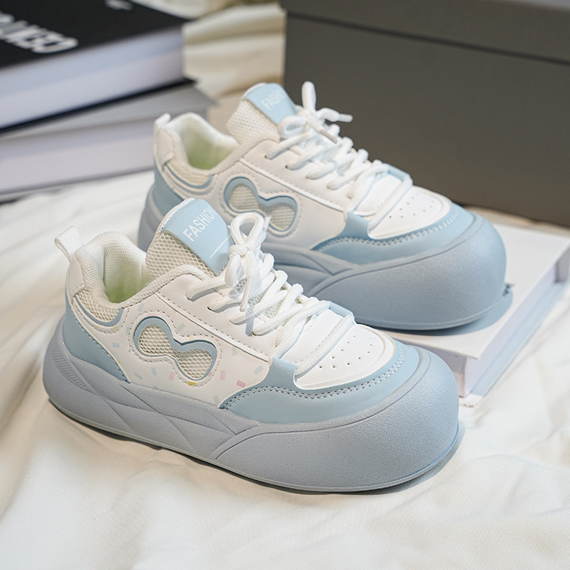 皮面板鞋女款2026春秋新款厚底小白鞋学生小众女童百搭洋气面包鞋