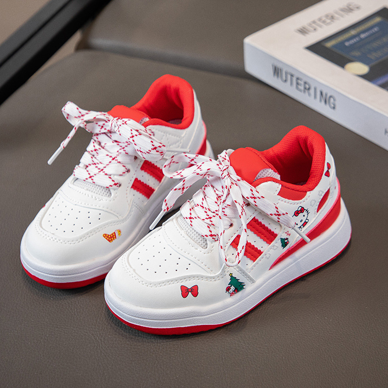 2026舒适潮流时尚女童男童可爱活力轻便平底中跟系带中大童小白鞋