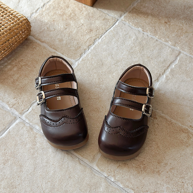 儿童复古玛丽珍鞋2026春秋新款女孩单鞋软底双扣带浅口皮鞋豆豆鞋