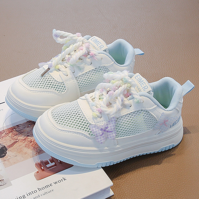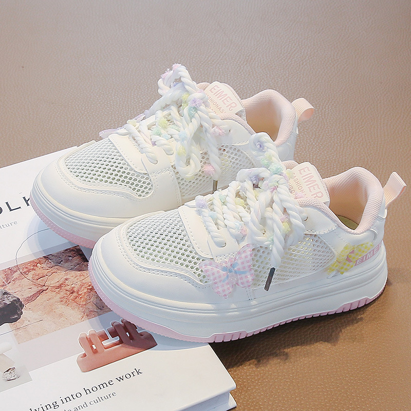 女童小白鞋儿童蝴蝶结网纱透气板鞋2026新款大童轻便休闲运动潮鞋