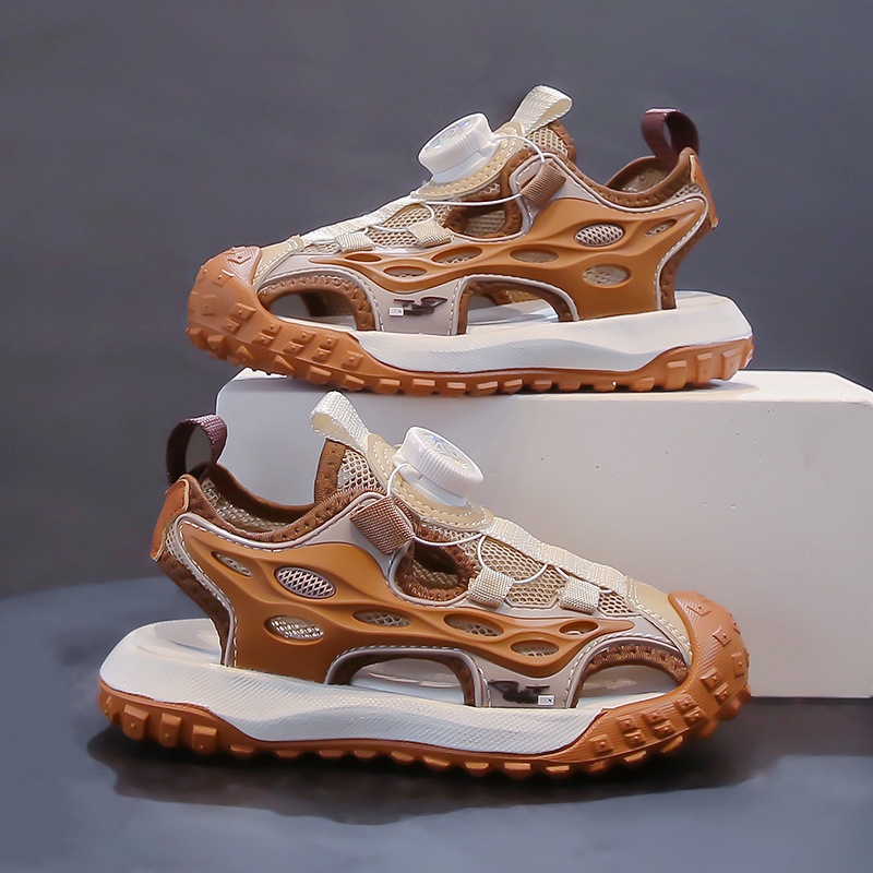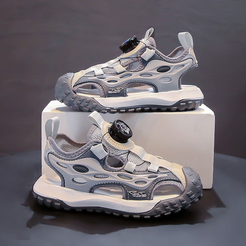儿童包头凉鞋2026夏季新款男童软底轻便旋转纽扣38码中大童沙滩鞋