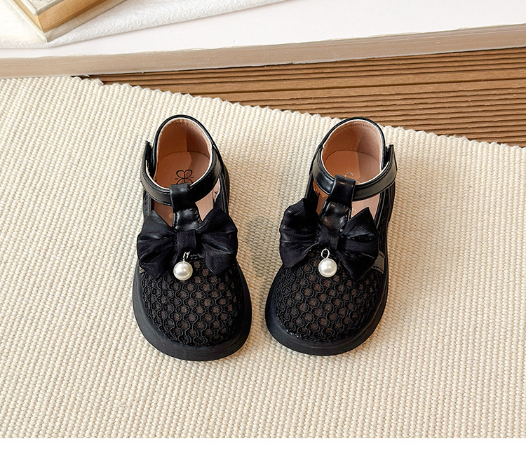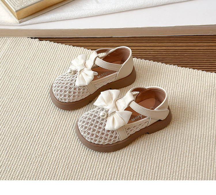 2026春夏季新款女童透气编织网鞋小女孩珍珠蝴蝶结鞋皮鞋镂空凉鞋